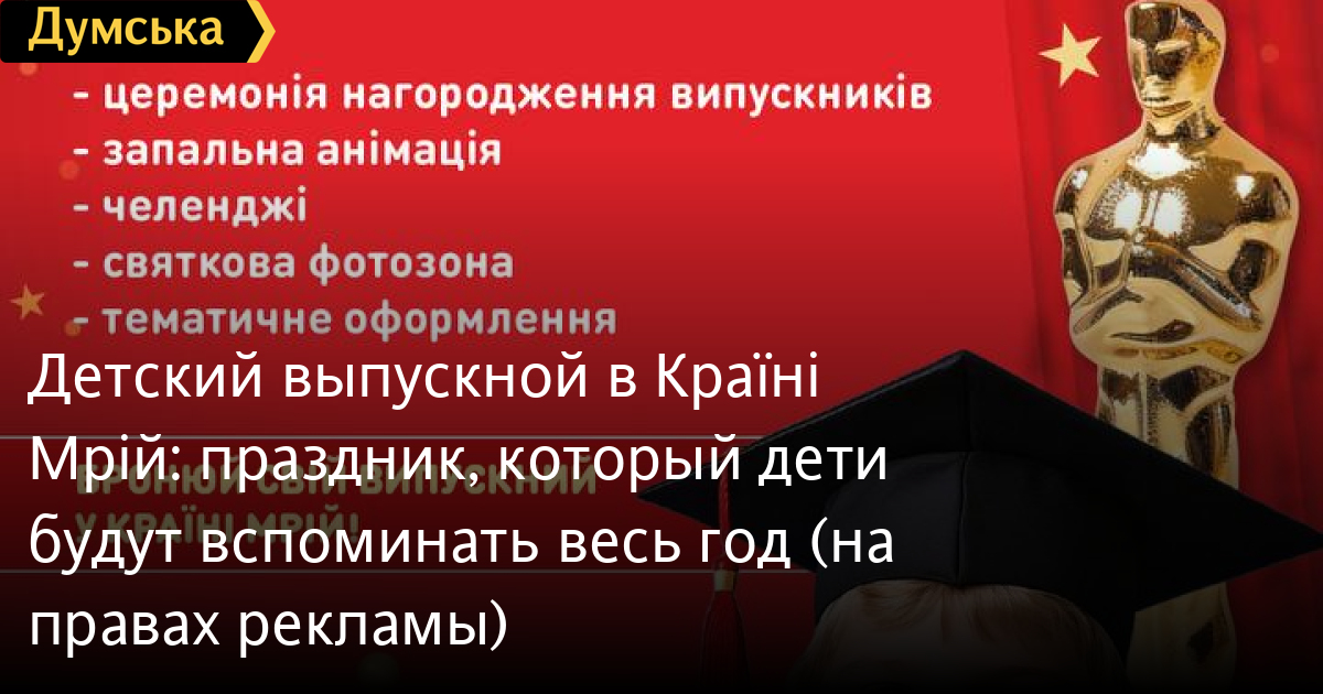 Детский выпускной в «Країні Мрій»: праздник, который дети будут вспоминать весь год (на правах рекламы)Заканчивается детский сад или начальная школа? Самое время устроить для детей настоящий яркий, веселый и незабываемый выпускной в «Країні Мрій»! Маленьких выпускников ждет: - торжественная церемония награждения (вручение «Оскара»), - зажигательная анимационная программа и веселые челленджи, - яркая фотозона для памятных снимков, - праздничная сервировка стола, - приятные подарки для учителя или воспитателя, –50% на вход для следующего посещения. В «Країні Мрій» мы создаем не просто праздник — мы создаем эмоции, которые остаются в памяти надолго. Бронируйте выпускной уже сейчас — лучшие даты быстро раскупают! Ждем вас в «Країні Мрій»! Одесса, ул. Семена Палия, 99 В, ТРЦ Меркурий +380 96 717 93 06 СМЕРТЬ РОССИЙСКИМ ОККУПАНТАМ! Заметили ошибку? Выделяйте слова с ошибкой и нажимайте control-enter |