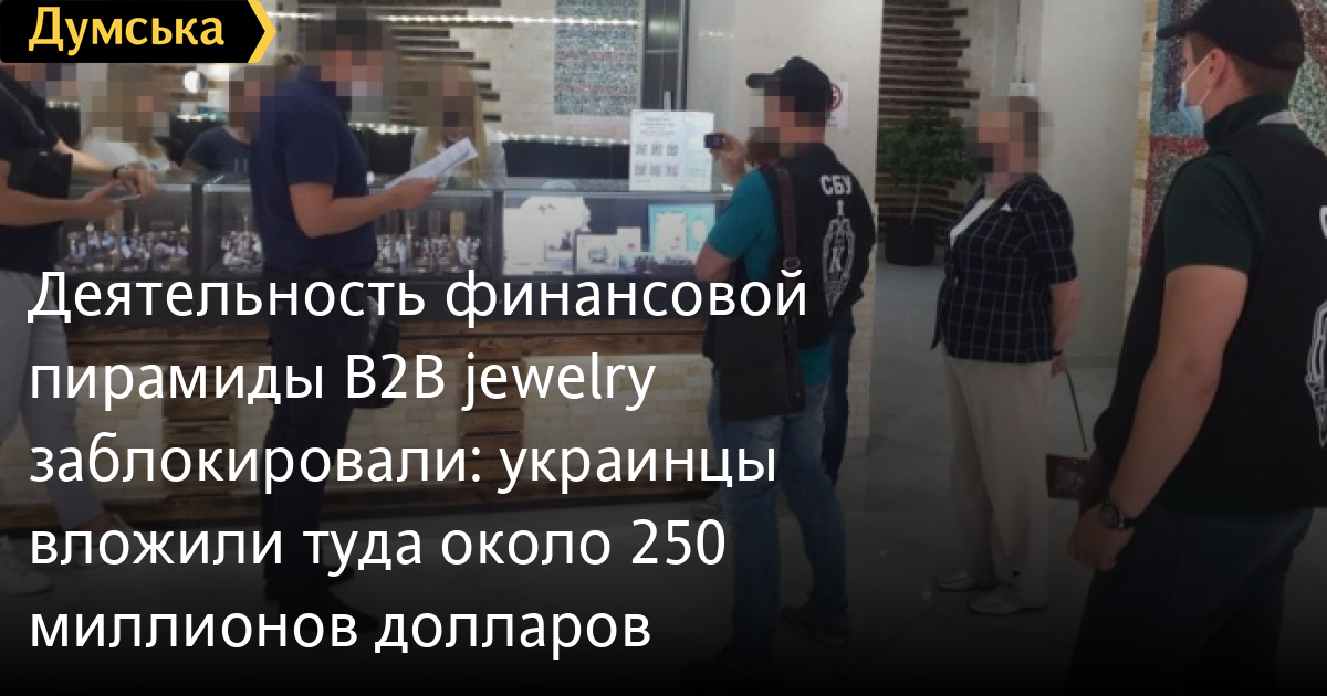 «К организации финансовой сделки причастны более 20 человек, задействовано более 100 подконтрольных юридических лиц. За период функционирования пирамиды, с начала 2019 года, организаторы приобрели за незаконно полученные средства один из островов Днепровского каскада с расположенными на нем объектами недвижимости, 18 элитных внедорожников, стоимостью более 100 000 долларов США каждый, драгоценности, другое движимое и недвижимое имущество», — говорится в сообщении.