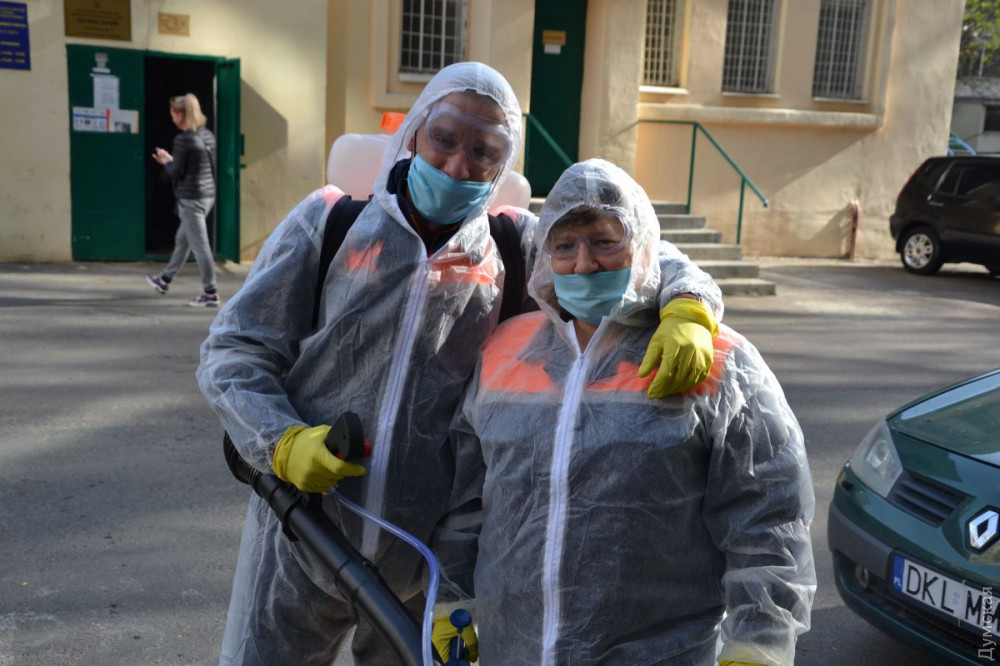 Одесские коммунальщики продолжают вносить свой вклад в борьбу с коронавирусом. Дворники, мастера и другие работники ЖКСов занимаются дезинфекцией парадных жилых домов, лавочек, а также спортивных и детских площадок. И хотя в их адрес часто звучат обвинения: мол, работают для галочки, — это не так. Большинство сотрудников жилищно-коммунального хозяйства трудится вполне добросовестно, в чем убедился корреспондент «Думской», который стал свидетелем нескольких таких обработок.
