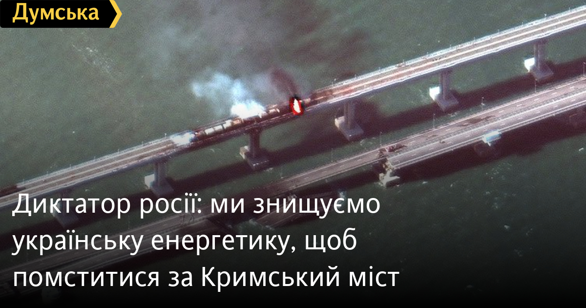 росія нищить об’єкти української енергетики і залишає мільйони українців без світла, бо Україна підірвала Кримський міст.