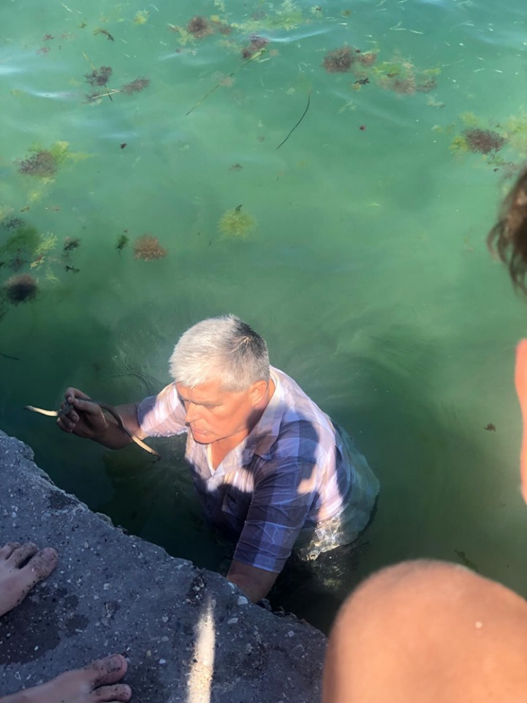 Новые приключения одесского змеелова и по совместительству директора зоопарка Игоря Белякова: на пляже в районе 15 станции Фонтана он поймал водяного ужа.