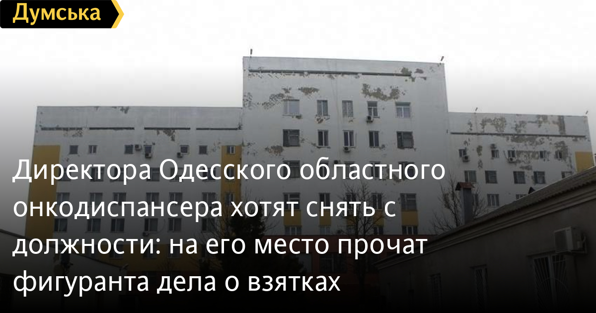 Директора Одеського обласного онкодиспансеру хочуть зняти з посади: на його місце пророкують фігуранта справи про хабаріДиректора Одеського обласного онкологічного диспансеру В'ячеслава Полясного планують зняти або усунути з посади. Про це «Думскій» повідомило джерело в обласній військовій адміністрації. За словами нашого співрозмовника, ініціатор звільнення, що готується — директор облдепартаменту охорони здоров'я Наталя Одарій-Захар'єва за узгодженням із керівництвом ОВА. «Полясний як військовий лікар у минулому (він закінчив військово-медичний факультет Горьківського медіна, — Ред.) ухвалив рішення мобілізуватися — це дасть йому змогу зберегти за собою місце, — зазначило джерело. Після перемоги ситуація в адміністрації може кардинально змінитися, і тоді він повернеться назад». Попередньо на місце Полясного планують призначити колишнього заступника головного лікаря онкодиспансеру Олександра Михайленка, якого в жовтні 2015 року затримали за підозрою в хабарництві (правоохоронці задокументували 21 факт). Справа до суду так і не дійшла. СМЕРТЬ РОСІЙСЬКИМ ОКУПАНТАМ! Помітили помилку? Виділяйте слова з помилкою та натискайте control-enter |