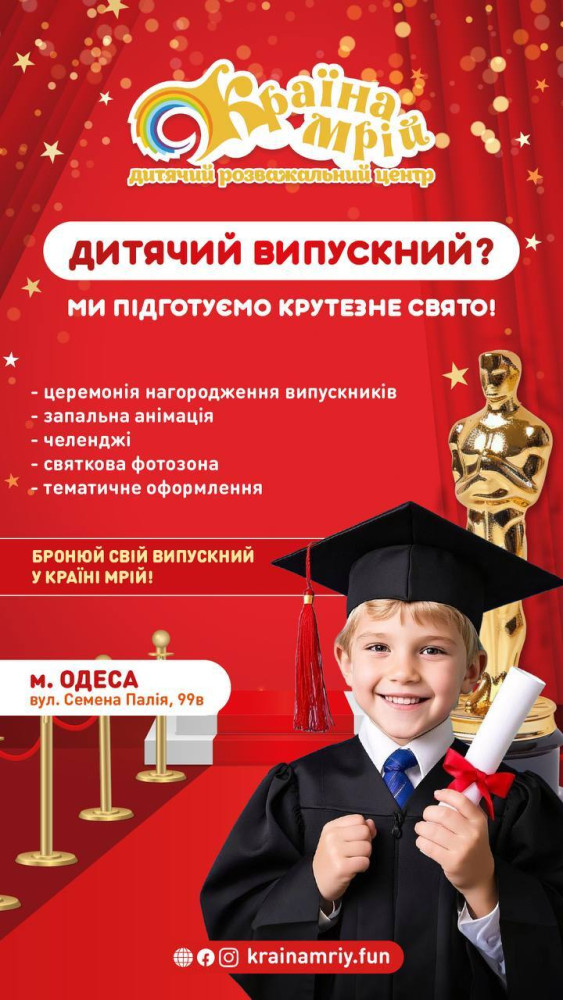 Дитячий випускний у Країні Мрій: «Оскар», запальна анімаційна программа та веселі челенджі (на правах реклами)Дитячий випускний у Країні Мрій — свято, яке діти будуть згадувати весь рік! Закінчується садочок або початкова школа? Саме час зробити для дітей справжній яскравий, веселий і незабутній випускний у Країні Мрій! На маленьких випускників чекає: — урочиста церемонія нагородження (вручення «Оскар») СМЕРТЬ РОССИЙСКИМ ОККУПАНТАМ! Заметили ошибку? Выделяйте слова с ошибкой и нажимайте control-enter |