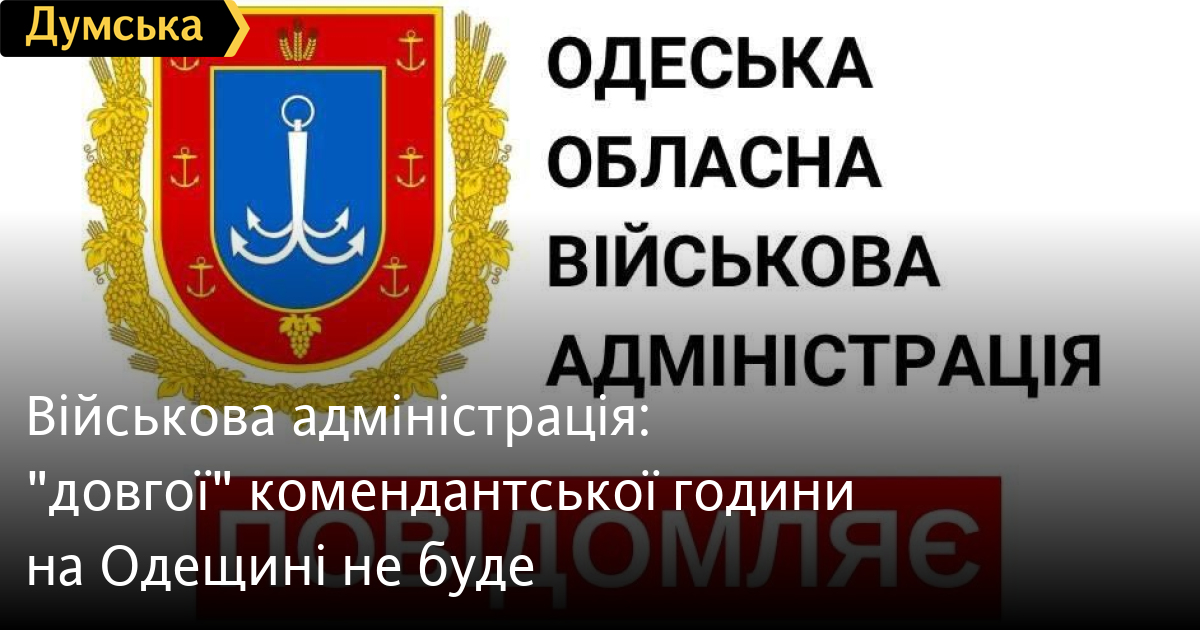 Одеська обласна військова адміністрація офіційно повідомила, що «довгої» комендантської години на час святкування Дня незалежності вводити не буде.