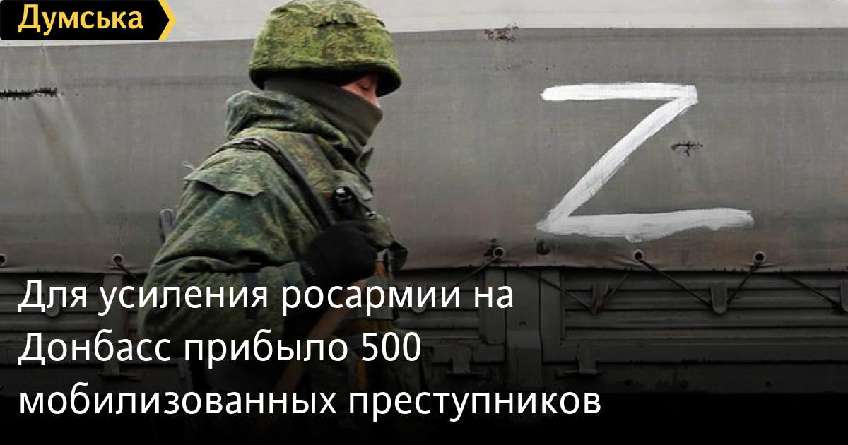 Для усиления росармии на Донбасс прибыло 500 мобилизованных преступниковПодкрепление из 500 мобилизованных уголовных преступников прибыло на территорию Донецкой области для усиления воюющей там российской армии. Об этом сообщили в Генштабе Украины. Командирами вновь прибывших подразделений назначены офицеры из числа бывших российских правоохранителей. «Командование российских войск издало распоряжение об изъятии мобильных телефонов у всех прибывающих мобилизованных», — подчеркнули в Генштабе. СМЕРТЬ РОССИЙСКИМ ОККУПАНТАМ! Заметили ошибку? Выделяйте слова с ошибкой и нажимайте control-enter |