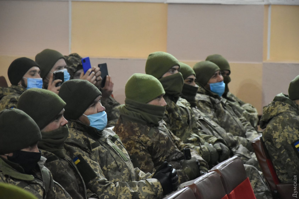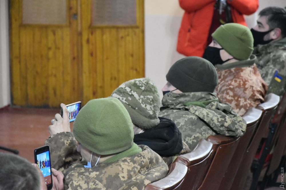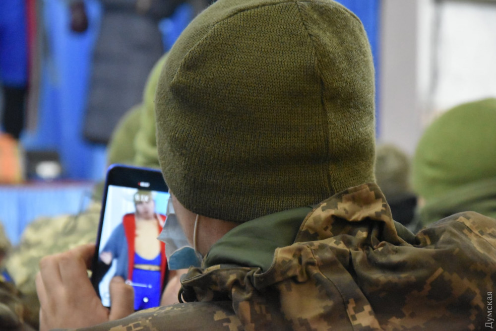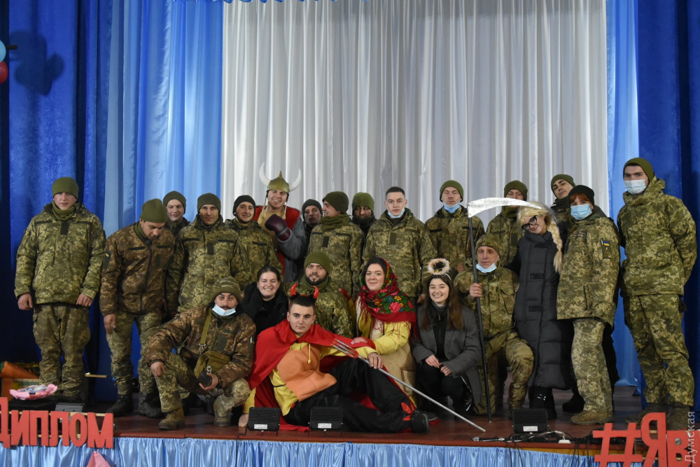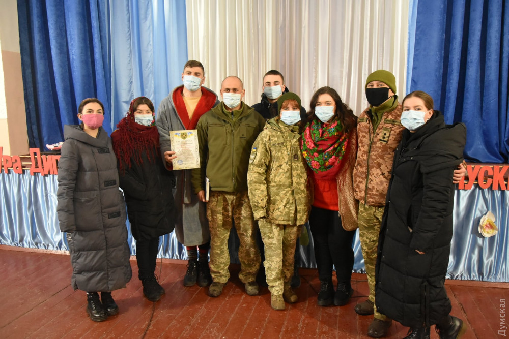 В части сообщили, что в гости к защитникам приехали представители студенческой организации «Україна – єдина», правда из-за карантина добраться удалось только шестерым участникам труппы.