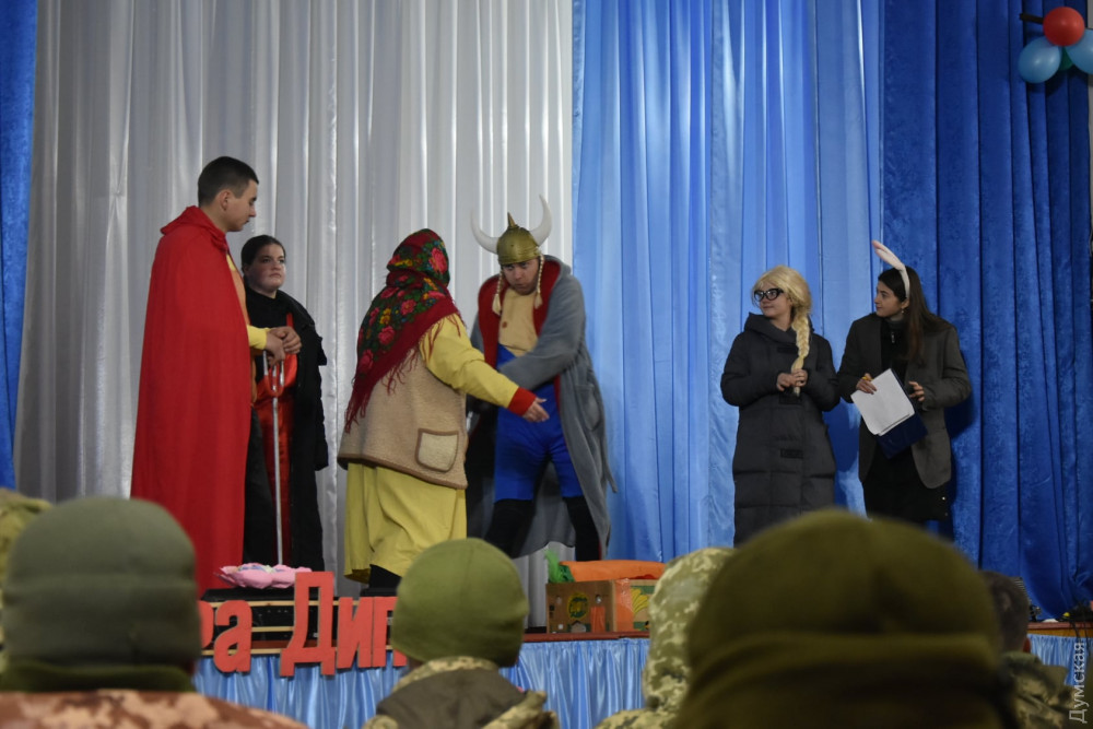 На Старый Новый год, 13 января, военнослужащие 28-й бригады имени Рыцарей Зимнего похода, которые сейчас по ротации находятся на Донбассе, посмотрели праздничный юмористический спектакль.