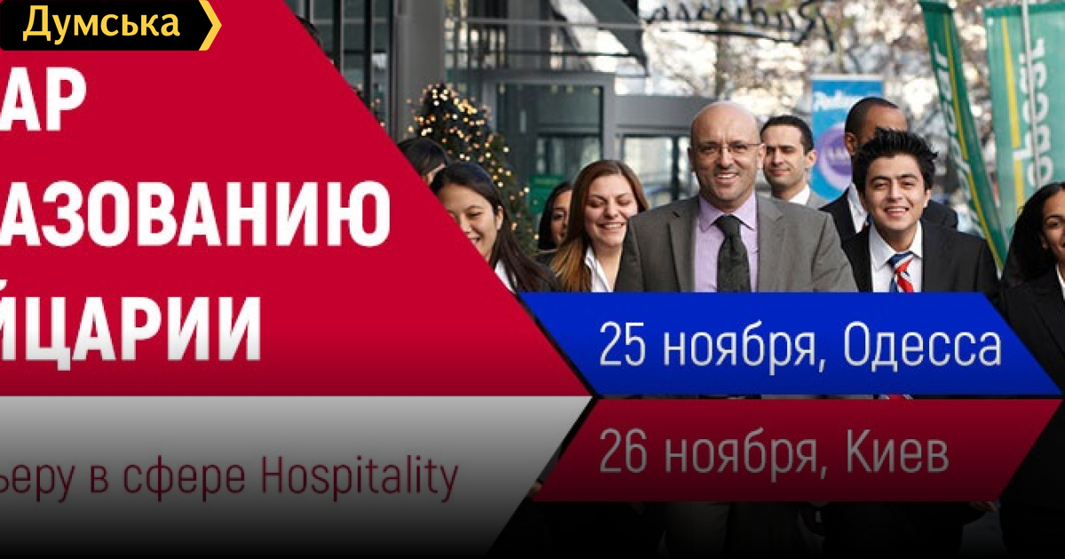 Дни Европы в STUDY.UA: новые возможности для успешных одесситов (на правах рекламы)Вы решили получать образование за границей, но еще не определились, в какой именно стране? Самое время узнать о различных вариантах обучения за границей и начать процесс поступления на сентябрь 2018 года! Уже в эту субботу в Одессе пройдет образовательный семинар, который организовывает компания STUDY UA. На нем каждый гость сможет ознакомиться с возможностями обучения в европейских университетах на английском языке. Гости мероприятия: Магди Атталла успешно сотрудничает с компанией STUDY.UA на протяжении нескольких лет и помогает сотням украинских студентов отправиться на обучение в Швейцарию. На этот раз профессор приезжает в Украину с визитом, чтобы лично презентовать университет B.H.M.S. и ответить на все вопросы участников семинара. Посетите семинар по образованию в Швейцарии и узнайте, как получить диплом одного из престижных университетов — B.H.M.S. University Centre, и начать международную карьеру в отельно-ресторанном бизнесе. На семинаре вы узнаете: почему сфера отельно-ресторанного бизнеса — это лучший выбор для успешного трудоустройства; что представляет собой обучение в Швейцарии; как поступить в университет B.H.M.S.; как пройти стажировку и начать международную карьеру. Этот семинар для вас, если вы: - родители, которые хотят обеспечить своему ребенку надежное будущее в динамично развивающейся индустрии; - абитуриенты, которые стремятся получить бесценный опыт обучения за рубежом и возможность пройти стажировку в лучших отелях или ресторанах Швейцарии; - выпускники украинских ВУЗов, которые нацелены получить престижную степень МВА и помощь в дальнейшем трудоустройстве; - специалисты в сфере туризма и отельно-ресторанного бизнеса, которые хотят усовершенствовать свои профессиональные навыки, начать международную карьеру или открыть собственное дело. Для гостей семинара университет B.H.M.S. University Centre предлагает скидку 15% (4000 швейцарских франков) на стоимость обучения! Специальное предложение распространяется при регистрации на программы высшего образования с началом обучения в январе 2018 года. Мария Немчинова, руководитель направления Великобритании, Ирландии и Нидерландов В Киеве и Одессе Мария с удовольствием ответит на все вопросы о возможностях обучения в этих странах. Приходите на встречу с представителями международного образовательного концерна STUDY GROUP в Одессе и узнайте о возможностях обучения в Великобритании, Нидерландах и Ирландии. Приглашаем на встречу: школьников, которые планируют начать учебу за границей в 2018 году; студентов последних курсов, которые хотят продолжить обучение в зарубежном вузе; родителей абитуриентов. Вы получите самую полезную и актуальную информацию о требованиях к зачислению в ведущие англоязычные университеты; учебных программах вузов Великобритании, Нидерландов и Ирландии; специальных стипендиях от наших иностранных партнеров.