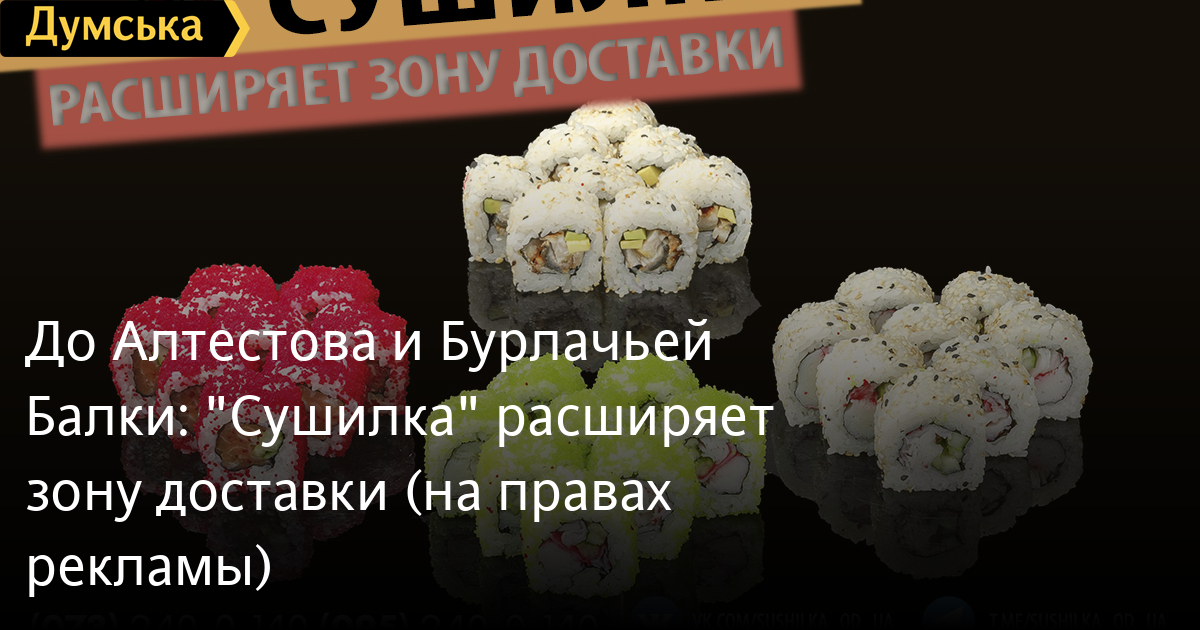 До Алтестова и Бурлачьей Балки: «Сушилка» расширяет зону доставки (на правах рекламы)Служба доставки еды «Сушилка» расширяет зону доставки. Отныне доставка не ограничена лишь пределами Одессы. Отныне попробовать свежайшие роллы, пиццу на дровах, разнообразные WOK блюда и салаты могут также жители поселков Дачное, Великая Балка и вплоть до Алтестова. Также была расширена зона доставки и в южном направлении — до Бурлачьей Балки включительно. Подробнее с зонами и условиями доставки можно ознакомиться в соответствующем разделе сайта sushilka.od.ua. Заказ можно сделать на сайте sushilka.od.ua, или по телефонам: 073-240-0-140; 095-240-0-140; 096-240-0-140; 048-735-29-99. СМЕРТЬ РОССИЙСКИМ ОККУПАНТАМ! Заметили ошибку? Выделяйте слова с ошибкой и нажимайте control-enter |