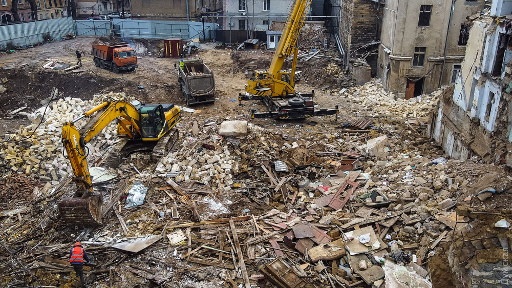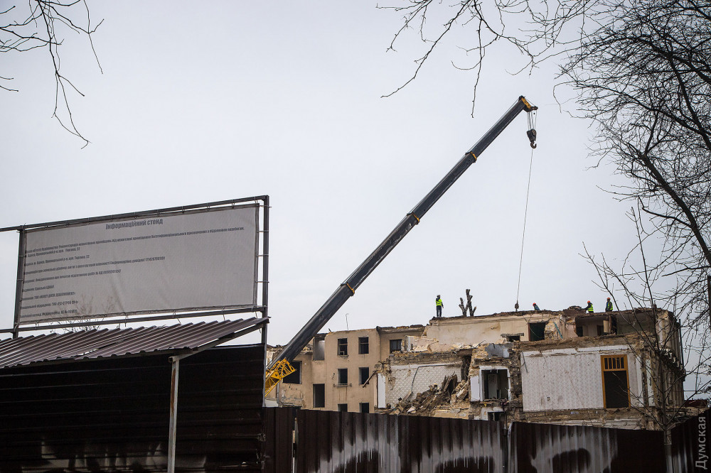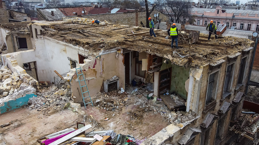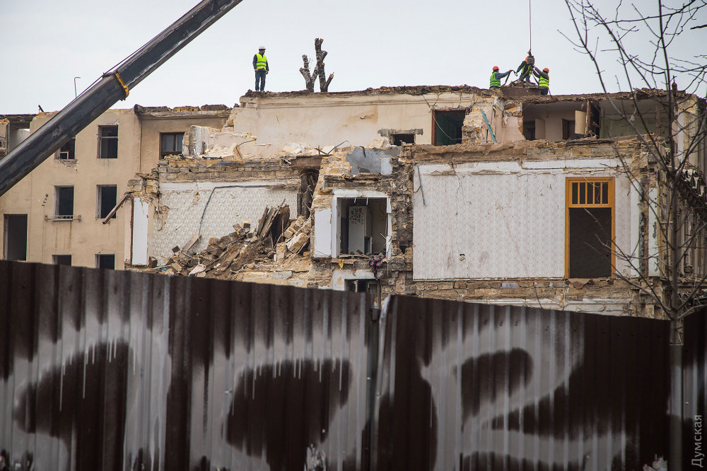 Как сообщают наши корреспонденты, строители уже снесли верхний этаж некогда величественного здания и продолжают по кирпичику разбирать здание. Тяжелая техника к демонтажным работам пока не привлекается.