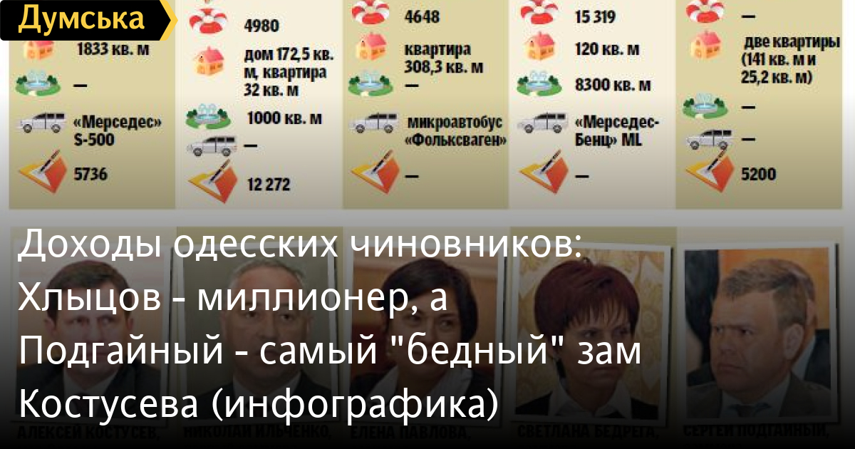 Настоящим открытием, уверяет издание, стал замгубернатора Петр Хлыцов, который официально подтвердил свой статус миллионера. Совокупный доход Петра Владимировича в 2011 году сложился из скромного оклада (около 6 тыс. грн/месяц), продажи недвижимости и авто, принесшей чиновнику 298 тыс. 600 грн, процентов от банковского вклада (на счету — 12 млн грн) — около 1 млн 107 тыс. и матпомощи в 4 тыс. 648 грн. Последняя, как признался нам Хлыцов, начисляется бухгалтерией ОГА всем сотрудникам администрации перед их уходом в отпуск. А еще замгубернатора признался, что заработал свои миллионы еще до начала службы чиновником.