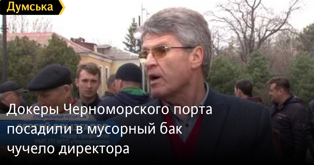 Докеры Черноморского порта посадили в мусорный бак «чучело» директора предприятия Сергея Крыжановского.