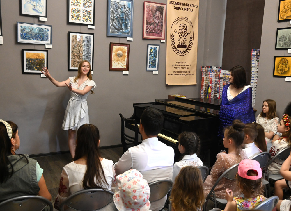 Песни из детских кинофильмов исполнила Елизавета Скорба, солистка вокально-хоровой студии «Жемчужины Одессы», победитель Всеукраинских и Международных вокальных конкурсов.