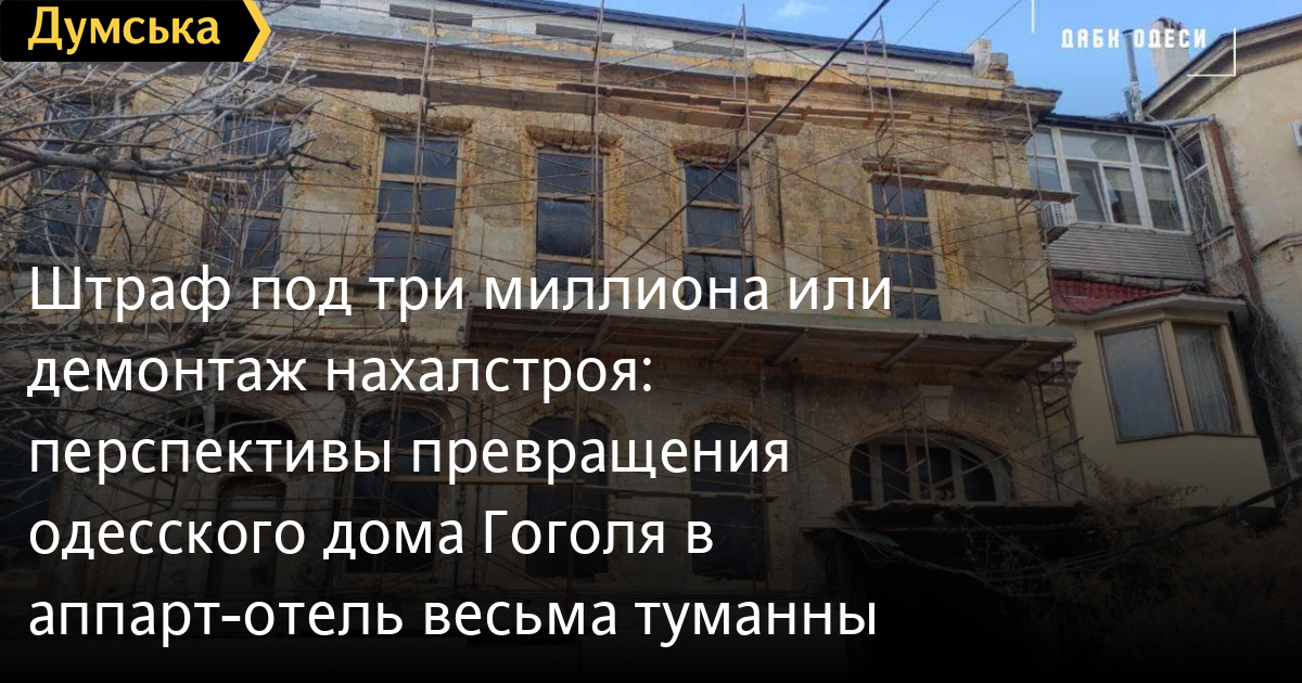 Владельцам одесского дома Гоголя грозит штраф в размере 2,7 млн грн за достройку памятника архитектуры.
