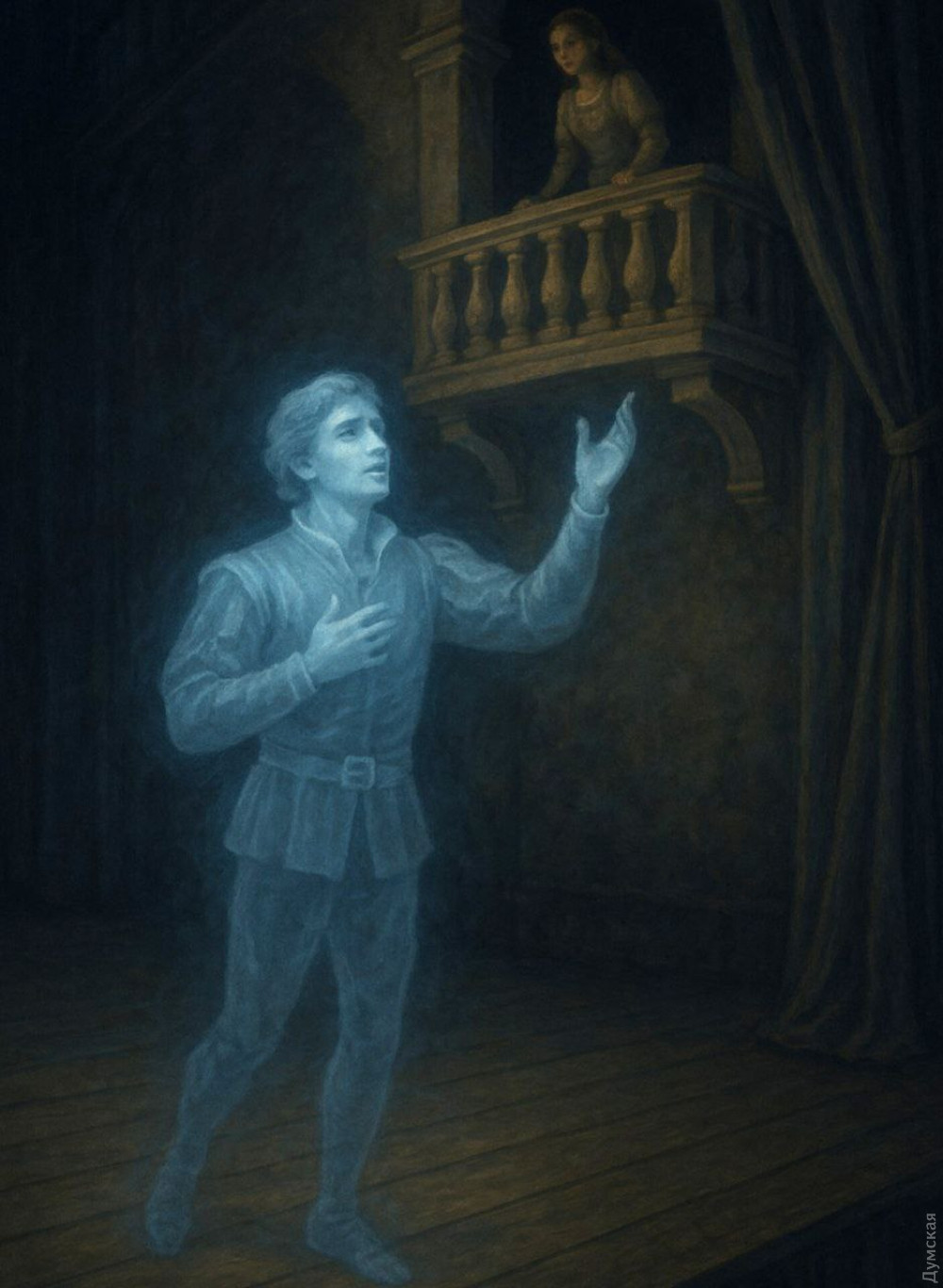 У 60-х роках тут сталася трагедія. Під час репетиції актор, який грав роль Ромео, не помітив відкритого сценічного люка й упав. Від отриманих травм він загинув на місці. Відтоді в театрі нерідко чують дивні кроки й шепіт у порожніх коридорах. Сам оповідач зізнається, що довго не вірив у ці історії… аж поки не став свідком дивного випадку.