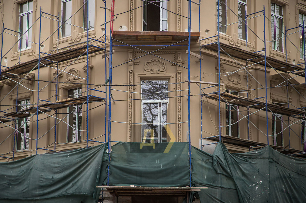 Напомним, реставрация здания стартовала два года назад, осенью 2019 года. Тогда строители начали сбивать богатую лепнину с фасада здания, не озаботившись безопасностью учеников музыкальной школы, располагающейся на первом этаже дома.
