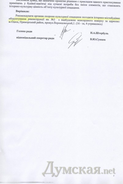 «Думской» стали известны новые подробности скандального строительства мансарды на памятнике архитектуры национального значения – т.н. «доме Потоцкого» по адресу Приморский бульвар, 1.