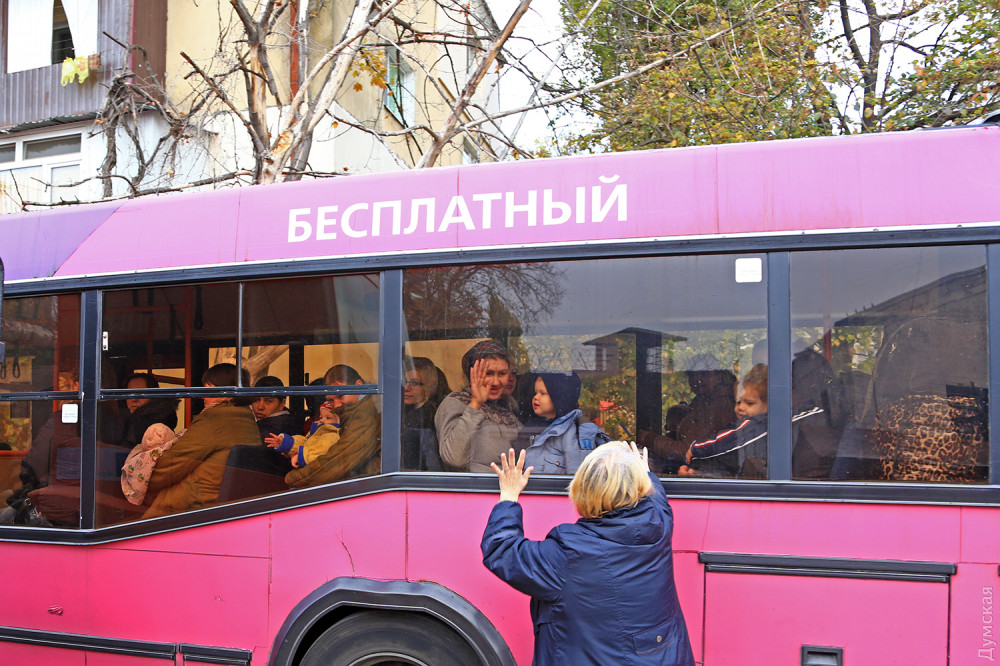 Автобус для перевозки детей на станцию «Одесса малая», где стоит спецвагон, въехал на территорию учреждения около 08:30. Водитель Анатолий слегка шокирован таким заказом. «Я в молодости отсидел немало лет на зонах, после отсидки последнего срока думал, что уже никогда не вернусь за колючку, а тут на тебе, заказ моего автобуса прямо туда», — шутит лихой водила.