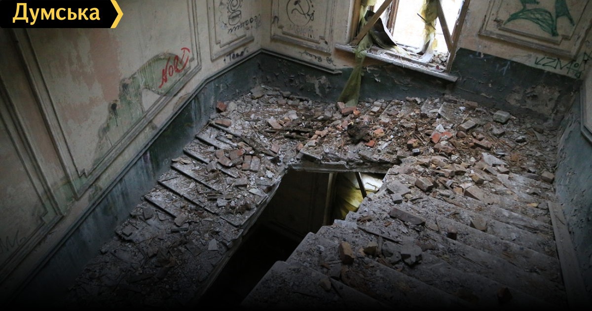 В центре Одессы продолжает разрушаться памятник архитектуры — дом Руссова. За последние несколько лет в здании неоднократно происходили пожары и обвалы. Очередное обрушение произошло на днях. Как сообщили читатели «Думской», рухнула часть кровли прямо над центральной лестницей. Из-за обвала в крыше образовалась большая дыра, через которую дождевая вода заливает центральную парадную, ускоряя разрушение памятника архитектуры.