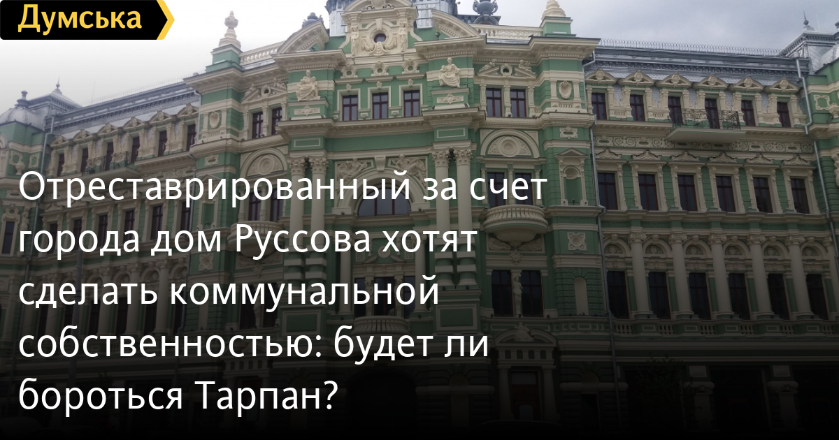 Наблюдатели уже обратили внимание на забавный момент: если дом Руссова регистрируется в качестве собственности территориальной громады только сейчас, то, выходит, муниципалитет потратил больше 150 миллионов гривен на реставрацию чужого или ничейного имущества? При желании в этом можно усмотреть нецелевую трату бюджетных средств, что, в свою очередь, может стать основанием для открытия уголовного производства.