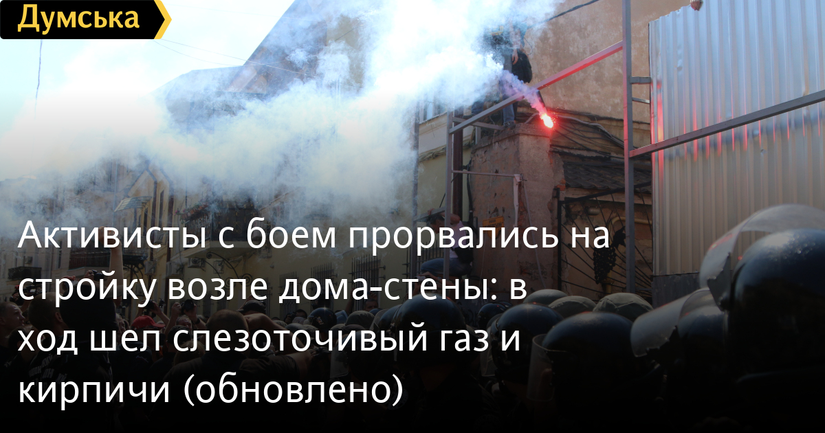 В ходе демонтажа одному из патриотов упавший со стройки кирпич угодил в голову — его увезла скорая.