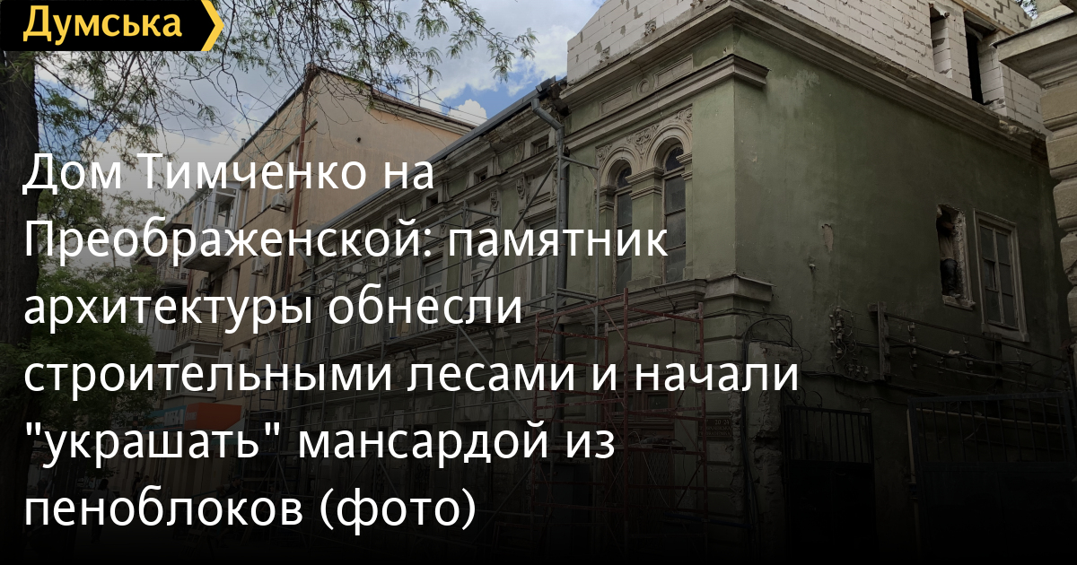 В двухэтажном памятнике архитектуры на Преображенской, 22, известном как дом Тимченко, стартовали строительные работы.