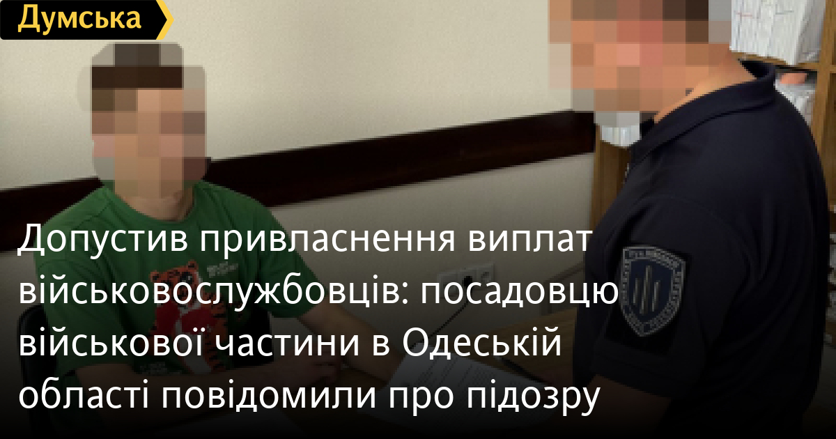 Допустив привласнення виплат військовослужбовців: посадовцю військової частини в Одеській області повідомили про підозруДо восьми років позбавлення волі загрожує начальнику фінансово-економічної служби однієї з військових частин Одеської області, який допустив привласнення виплат військовослужбовців. Як повідомили у пресслужбі Державного бюро розслідувань, влітку минулого року бухгалтер частини два місяці вказував у документах з виплати грошей свій рахунок. І в такий спосіб привласнив понад чотири мільйони гривень, які призначалися захисникам. Його керівник не перевіряв дані та підписував документи про перерахування коштів. Правоохоронці повідомили посадовцю про підозру в недбалому ставленні до служби (ч. 4 ст. 425 КК України). Йому загрожує від п'яти до восьми років в'язниці. Щодо бухгалтера Нацполіція вже скерувала обвинувальний акт до суду, а для відшкодування збитків подала цивільний позов. Помітили помилку? Виділяйте слова з помилкою та натискайте control-enter |