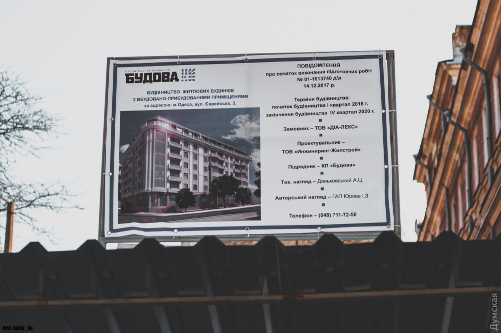 Пятно застройки вплотную примыкает к памятнику архитектуры по адресу Еврейская, 1, где жил известный писатель и журналист, идеолог сионизма, создатель Еврейского легиона и один из руководителей террористической организации «Иргун» Владимир Жаботинский. Жители дома опасаются, что строительные работы негативно скажутся на их доме и даже обратились к президенту Израиля с просьбой защитить их дом от уничтожения.
