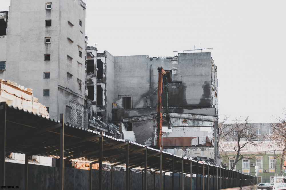 На стройплощадке тем временем приступили к демонтажу основного производственного корпуса фабрики — бетонной семиэтажки по адресу Троицкая, 10/1.