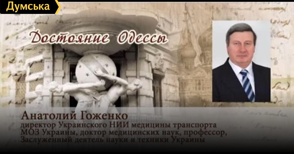 Достояние Одессы. Анатолий Гоженко, директор украинского НИИ медицины транспорта МОЗ УкраиныДостояние Одессы. Анатолий Гоженко, директор украинского НИИ медицины транспорта МОЗ Украины, доктор медицинских наук ,профессор СМЕРТЬ РОСІЙСЬКИМ ОКУПАНТАМ! Помітили помилку? Виділяйте слова з помилкою та натискайте control-enter Думская ТВ. Достояние Одессы: