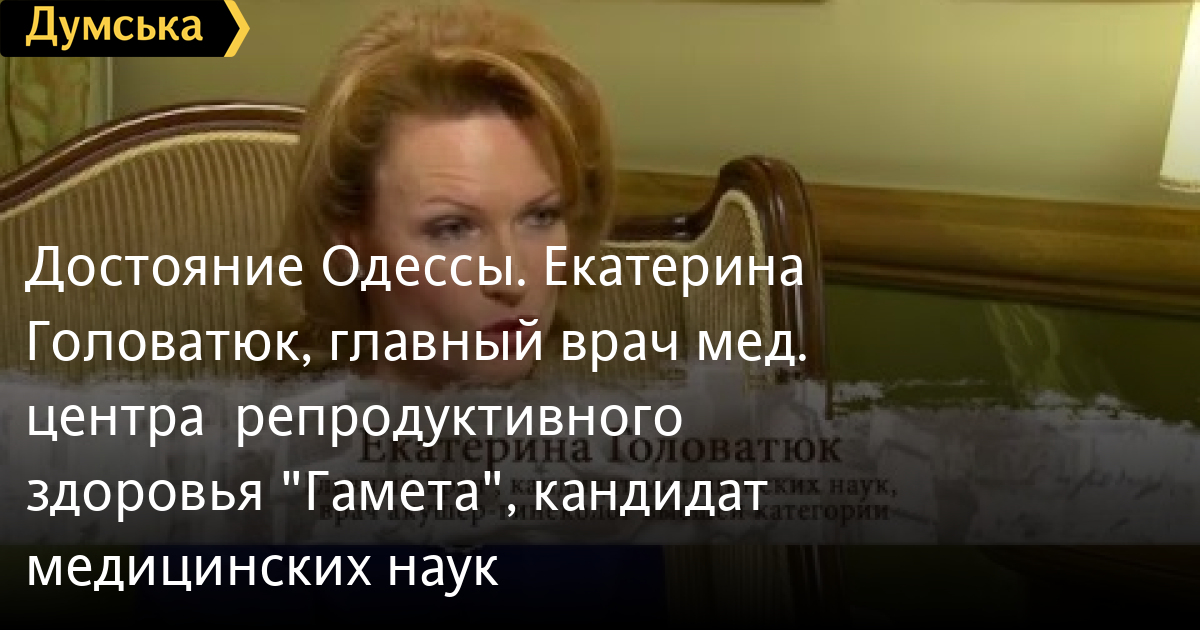 Достояние Одессы. Екатерина Головатюк, главный врач мед. центра репродуктивного здоровья «Гамета», кандидат медицинских наукСМЕРТЬ РОССИЙСКИМ ОККУПАНТАМ! Заметили ошибку? Выделяйте слова с ошибкой и нажимайте control-enter Думская ТВ. Достояние Одессы: