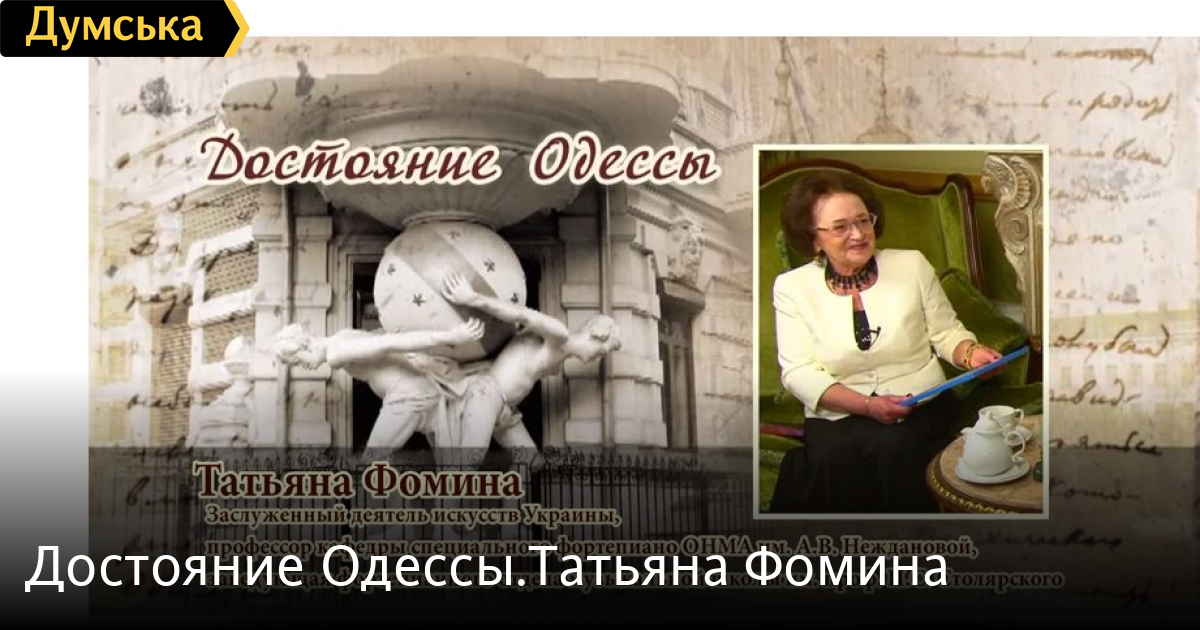 Татьяна Фомина-Заслуженный деятель искусств Украины,профессор кафедры специального фортепиано ОНМА им. А.В.Неждановой,зав. фортепианного отдела муз. школы им.Столярского