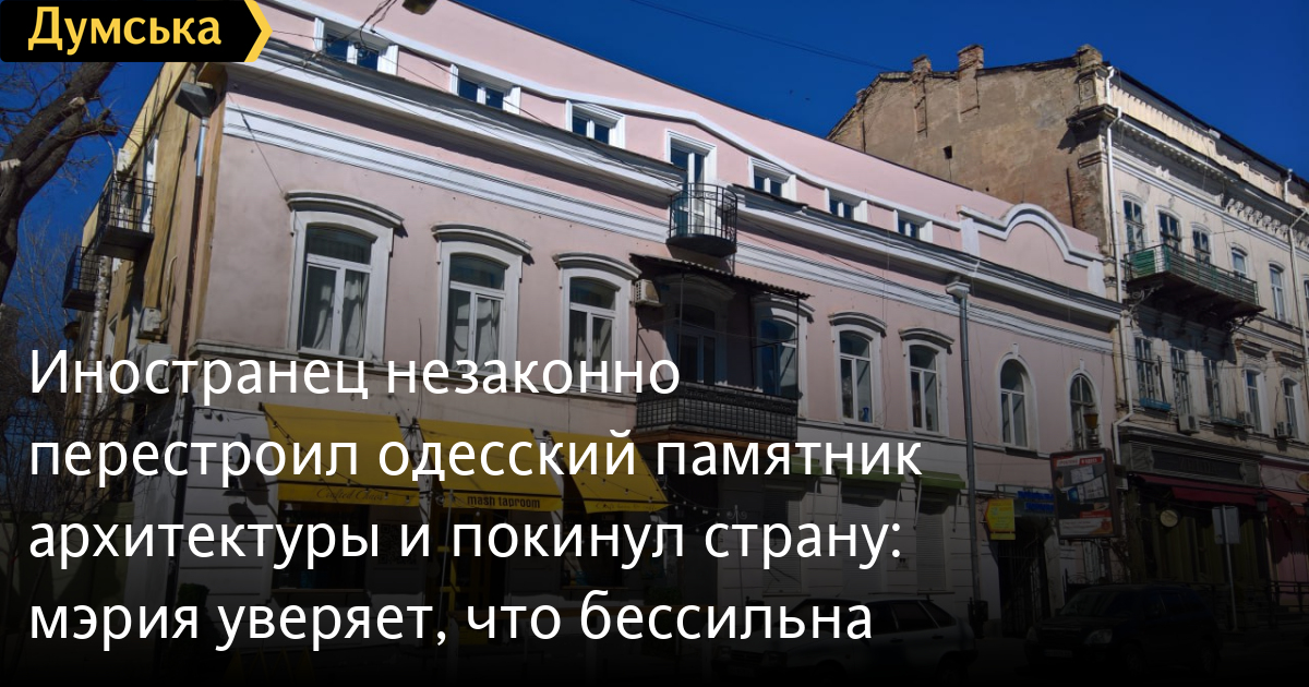 «С момента поступления информации о строительных работах в доме сотрудники райадминистрации выходили в адрес и остановили работы, о чем была направлена информация в государственную архитектурно-строительную инспекцию в Одесской области от 08.10.2019 года. До начала работ, 28 марта 2019 года, государственный регистратор, КП «Агентство державної реєстрації» (это частная контора, просто с лицензией, замешана в ряде сомнительных дел, — Ред.), зарегистрировало право собственности с открытием раздела по указанным объектам недвижимости. Такими действиями Галина Кудряшова и Озхан Реджеп без разрешительных документов противоправно зарегистрировали право собственности. В силу указанного обстоятельства Приморская районная администрация Одесского городского совета лишена возможности принять соответствующее распоряжение о приведении в первоначальное состояние к отмене судом права собственности», — говорится в ответе пресс-службы мэрии.