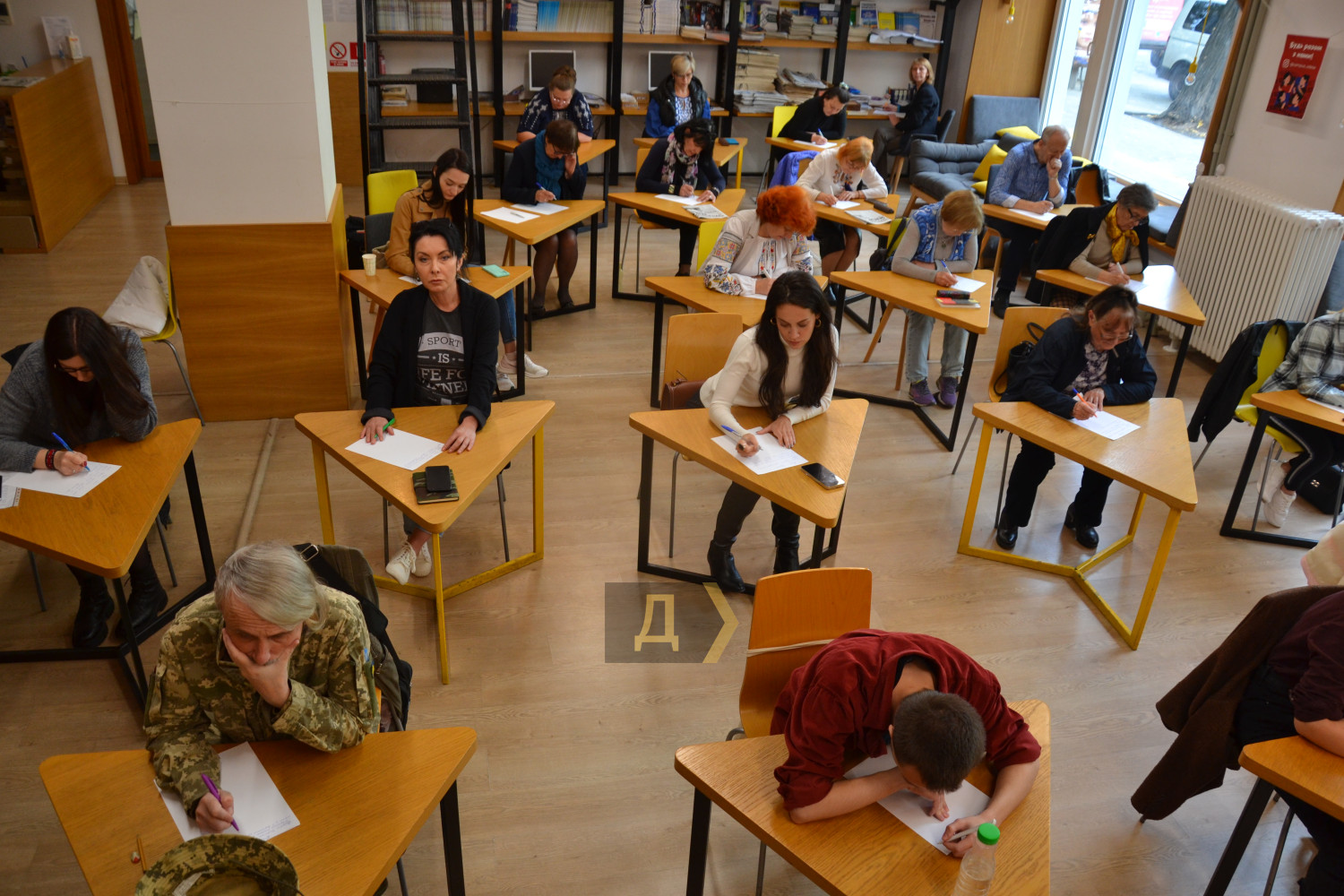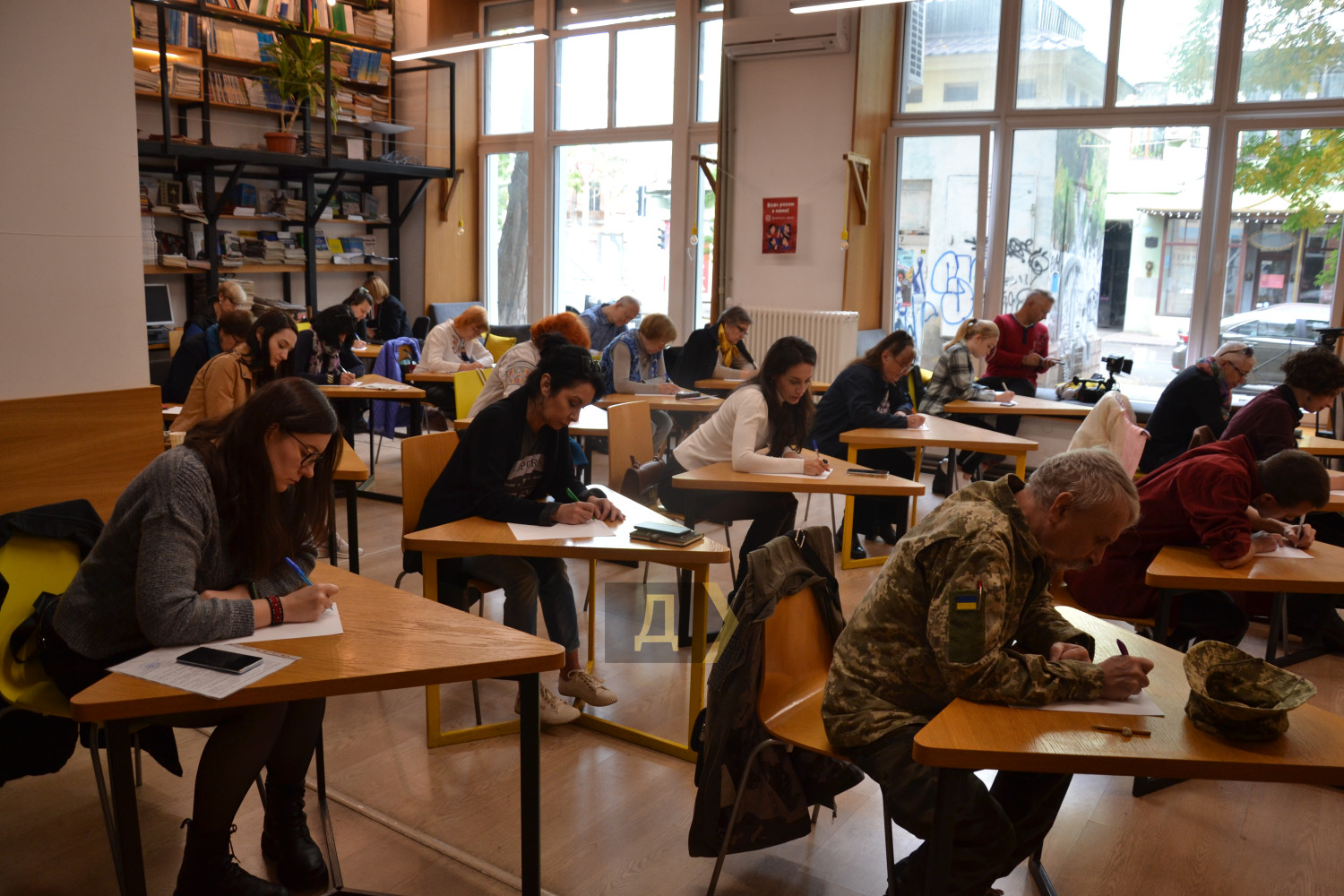 Як передає кореспондент «Думської», перевірити свої знання української мови зібралися кілька десятків одеситів — студенти, викладачі, воїни Сил оборони та багато інших.