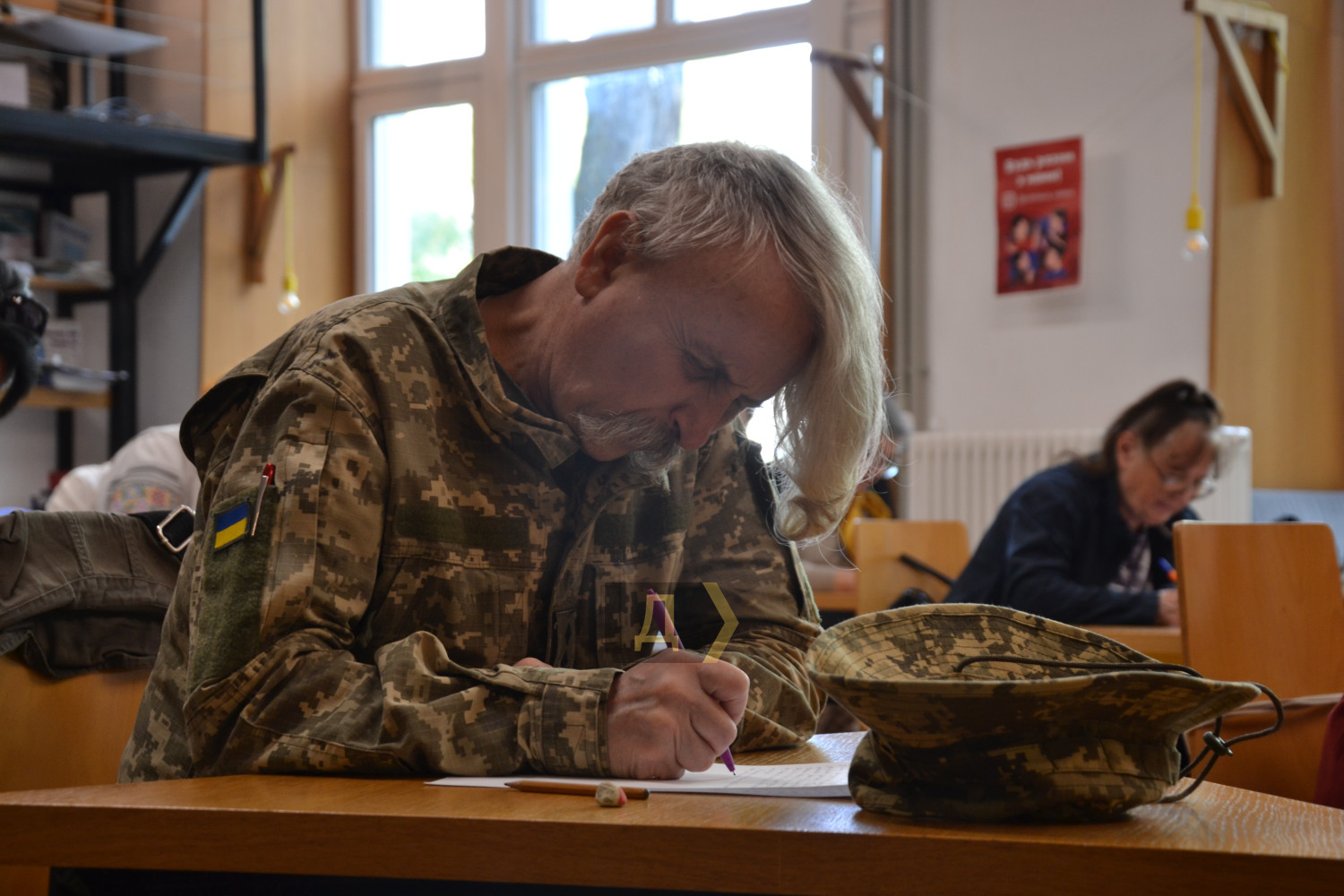 «Нині я знаходжуся на побувці, і вирішив долучитися до цієї акції, щоб перевірити свої знання. Сподіваюся, що результат буде кращим, ніж два роки тому», — каже військовослужбовець Сергій Янченко.