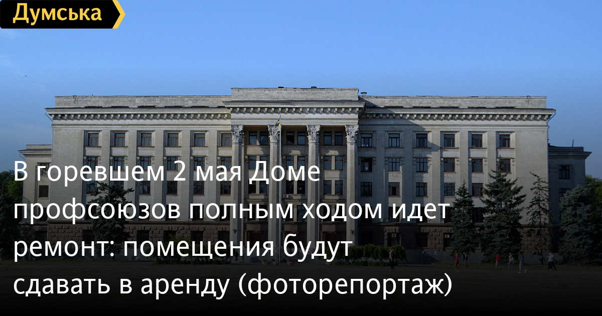 В здании Дома профсоюзов на Куликовом поле, где 2 мая 2014 года произошел страшный пожар, унесший 42 человеческие жизни, полным ходом идет ремонт.