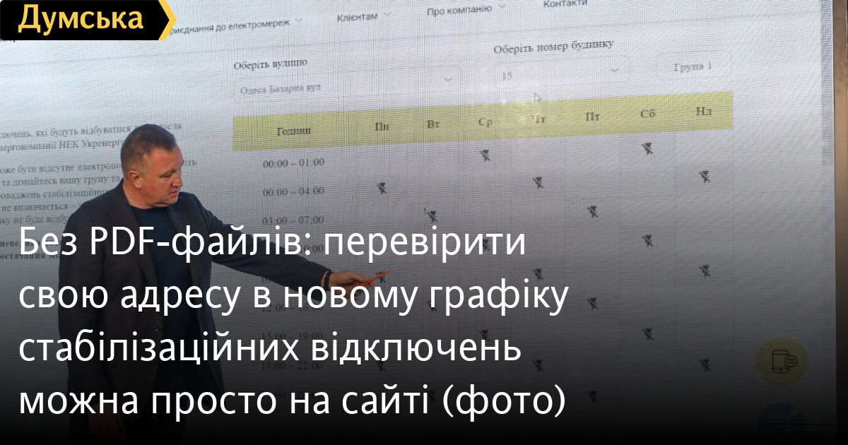 Без PDF-файлів: перевірити свою адресу в новому графіку стабілізаційних відключень можна просто на сайтіНовий графік стабілізаційних відключень електроенергії розробили фахівці ДТЕК Одеські електромережі. Тепер перевірити, до якої з трьох груп потрапляє ваш будинок, та чи потрапляє взагалі, можна прямо на сайті, не завантажуючи pdf-файл, передає кореспондент «Думської». За словами генерального директора компанії-оператора системи розподілу Дмитра Григор'єва, при складанні графіка враховано побажання мешканців міста і він затверджений в Одеській військовій адміністрації. «Ситуація залишається складною і ворог не втрачає надії знищити нашу енергосистему, тож використання аварійних і стабілізаційних графіків є необхідним, — зазначив Григор'єв. — Графіки — соціально справедливі. У нас не буде клієнтів, які будуть без світла тільки вранці або тільки ввечері». Як і раніше, абоненти розподілені на три групи, кожна з яких може бути відключена не більше ніж на чотири години тричі на добу. За словами Дмитра Григор'єва, адреси в графіку може не бути з трьох причин: 1. Ваш будинок живиться однією лінію з об'єктом критичної інфраструктури — тобто вам пощастило й компенсаційні відключення вас не торкнуться; 2. Якщо у вашому будинку ОСББ і його мешканці не мають прямих договорів із ДТЕК; 3. Це може бути помилка, яку в разі вашого звернення буде виправлено. «Графіки складають люди й звісно вони можуть помилятися, — уточнив Григор'єв. — Якщо ви не знайшли свою адресу, пишіть нам у месенджери або соцмережі, можна телефонувати до call-центру. Не чекайте одразу ж відповіді — ми збиратимемо заявки та щоп'ятниці коригуватимемо графіки». Керівник ДТЕК Одеські електромережі зазначив, що ситуація може змінюватися і повністю залежить від того, які вимоги надішле регіональним операторам «Укренерго». «Ми зобов'язані виконати заявку «Укренерго» протягом 15 хвилин, але все залежить від того, які цифри їм необхідні, — розповів Дмитро Григор'єв. — Якщо спростити, то в кожній черзі близько 200 МВт, якщо «Укренерго» каже, що для стабілізації необхідно скоротити на 100 МВт, то ми відключаємо не всю групу, а її частину. Щоб зреагувати у визначені 15 хвилин, ми будемо відключати ту частину, яку найлегше, з технічного погляду, без виїзду бригади. Потім це буде компенсуватися». СМЕРТЬ РОСІЙСЬКИМ ОКУПАНТАМ! Помітили помилку? Виділяйте слова з помилкою та натискайте control-enter |