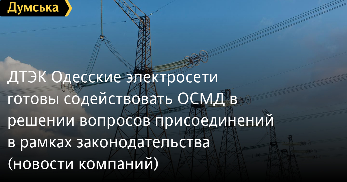 ДТЭК – ответственная компания, действующая в интересах общества. Понимая важность надежного электроснабжения клиентов, ДТЭК Одесские электросети готов содействовать присоединению домов по постоянной схеме в рамках действующего законодательства и технических норм. Присоединение клиентов к электросетям, заключение прямых договоров Оператор системы распределения (ОСР) осуществляет в рамках Кодекса систем распределения, Закона «О рынке электроэнергии» и Правил работы розничного рынка электроэнергии.