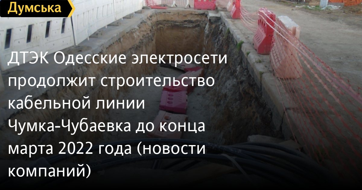 «ДТЭК действует в интересах Украины и своих клиентов. Главная задача оператора системы распределения – обеспечить жителей города и области бесперебойным электроснабжением, ведь это – свет и комфорт в домах наших клиентов. Благодаря прокладке новой кабельной линии «Чумка-Чубаевка», которая соединит реконструированную подстанцию «Чумка» с новой подстанцией «Чубаевка», мы обеспечим более 50 тысяч клиентов и социально важные объекты в Малиновском, Киевском и Приморском районах Одессы», – подчеркнул Александр Фоменко, генеральный директор ДТЭК Одесские электросети.