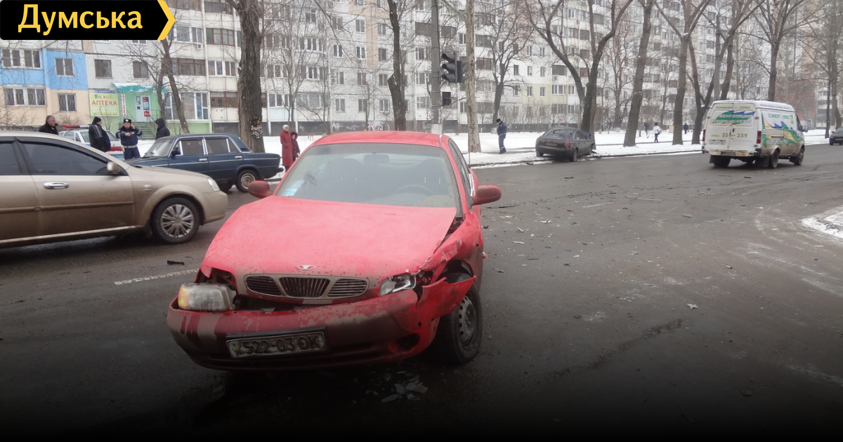 ДТП на Добровольского. Иномарка столкнулась с «ДЭУ» и въехала в дерево (Фото)