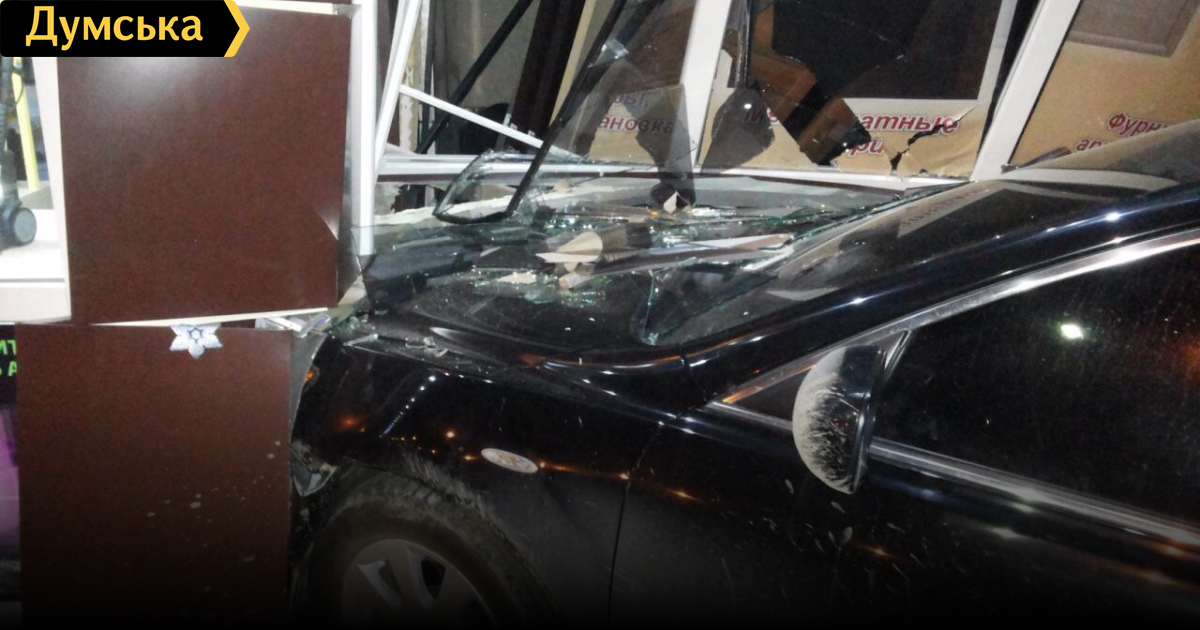 Из-за ямы на проспекте Добровольского машина въехала в магазин: водители перекрыли дорогу
