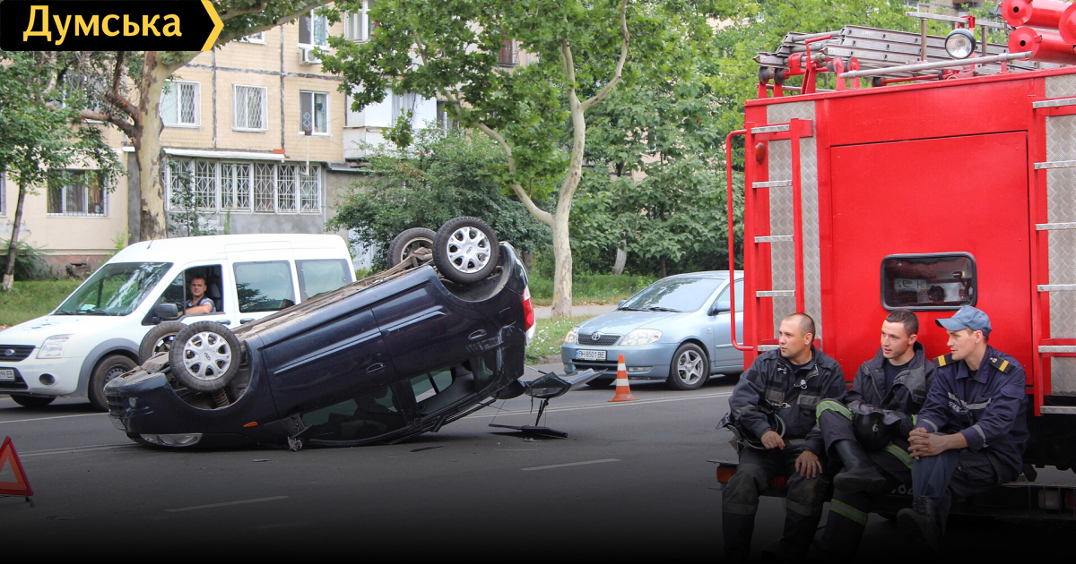 В результате аварии один автомобиль перевернулся на крышу, а второй откинуло на светофор, передает корреспондент «Думской».