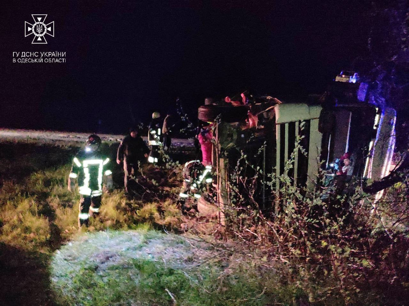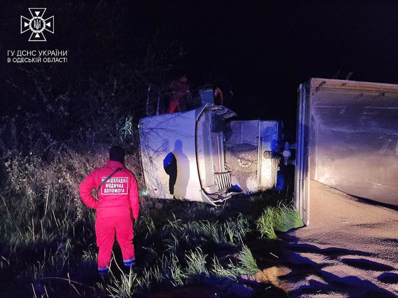 Як повідомили у пресслужбі ДСНС Одеської області, аварія трапилася в Березівському районі. Водій вантажного автомобіля, який перевозив 30 тонн пшениці, не впорався з керуванням і зіткнувся з легковиком.