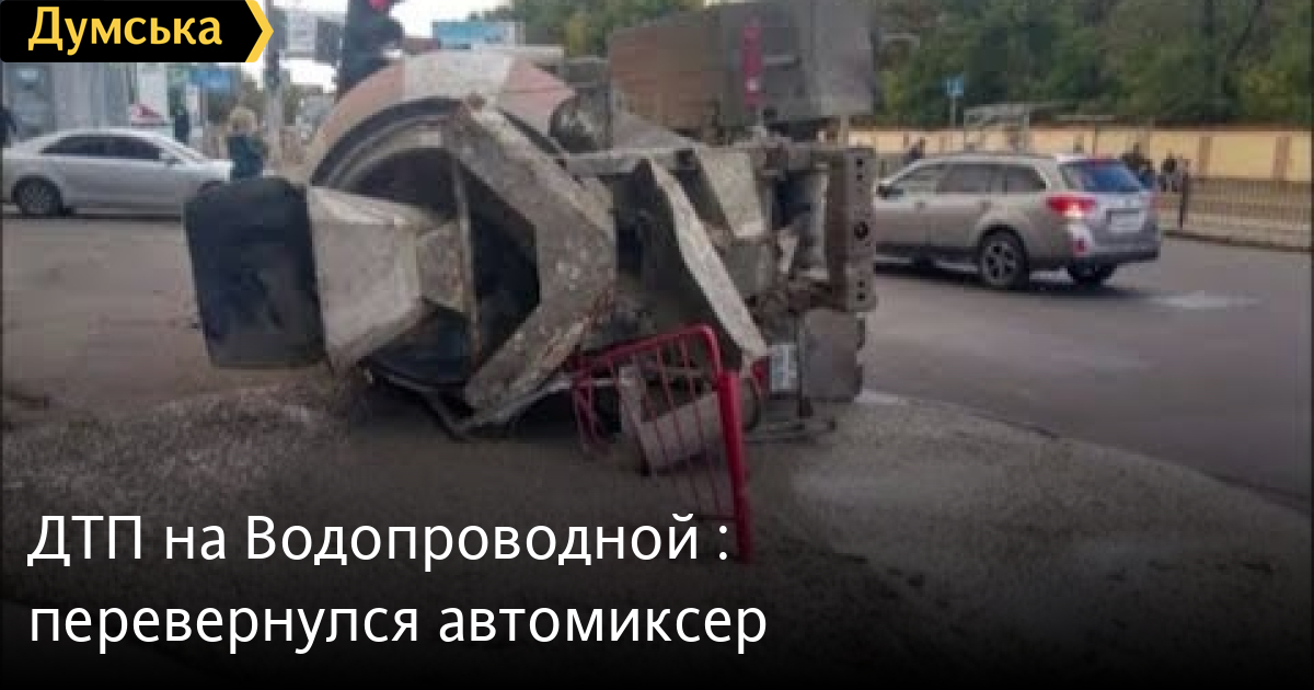 Водитель Камаза не справился с управлением. Бетономешалка врезалась в столб и перевернулась