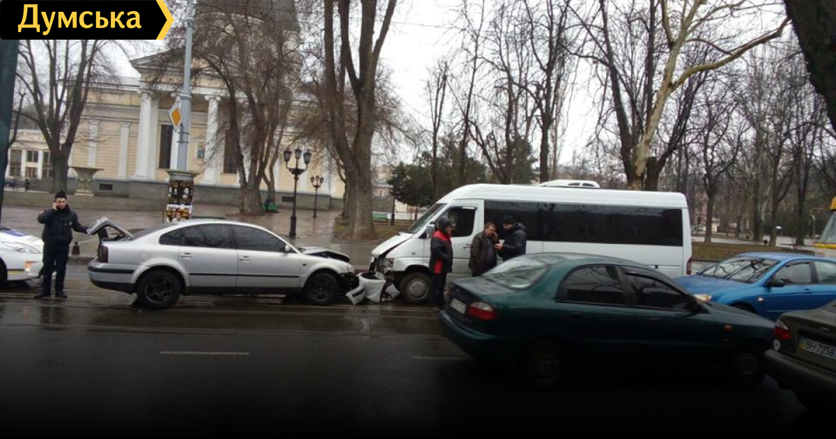 ОБНОВЛЕНО. Виновник аварии — водитель «Фольксвагена» на «бляхах», вылетевший с Греческой на встречку. Он скрылся с места происшествия вместе с пассажирами.