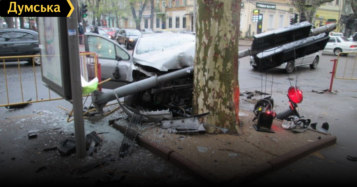 Сегодня на перекрестке Ришельевской и Успенской улиц автомобиль снес светофор.