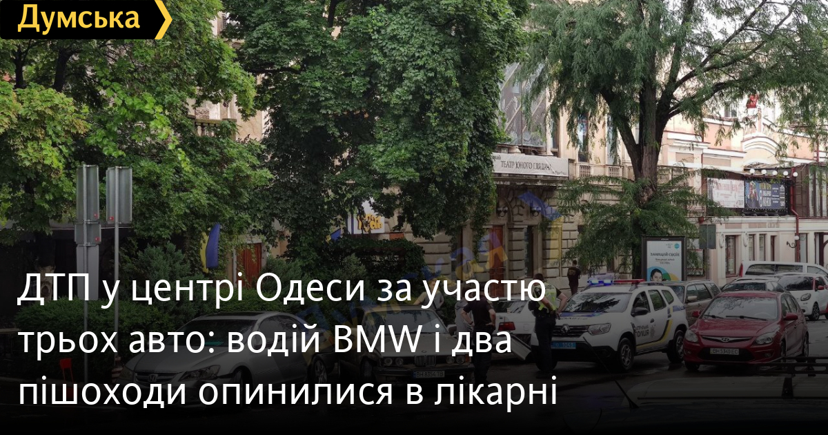 ДТП у центрі Одеси за участю трьох авто: водій BMW і два пішоходи опинилися в лікарніДТП за участю трьох автомобілів сталася вранці 26 червня в центрі Одеси. Як повідомили у пресслужбі патрульної поліції, на вулиці Грецькій водій BMW допустив зіткнення з припаркованою Honda, яку відкинуло на двох пішоходів. Після цього BMW продовжив рух і зіткнувся з іншим автомобілем BMW. Унаслідок пригоди двох пішоходів і водія першого «бумера» госпіталізували. Помітили помилку? Виділяйте слова з помилкою та натискайте control-enter Новини по цій темі: 30 серпня 2025: Машина вилетіла в кювет: мер Рені потрапив в аварію, його мати загинула, а маленький син у лікарні (фото) 18 серпня 2025: Троє загинули, один у лікарні: на трасі Одеса-Рені водій Mercedes не пропустив фуру (фото) 28 липня 2025: П'яний на "Ягуарі" або гіпертонік? Звільнений топ-посадовець одеської поліції хоче повернутися на службу 2 квітня 2025: В Одесі водій BMW спровокував аварію, в якій постраждали п`ятеро людей, і втік (фото, відео) |
