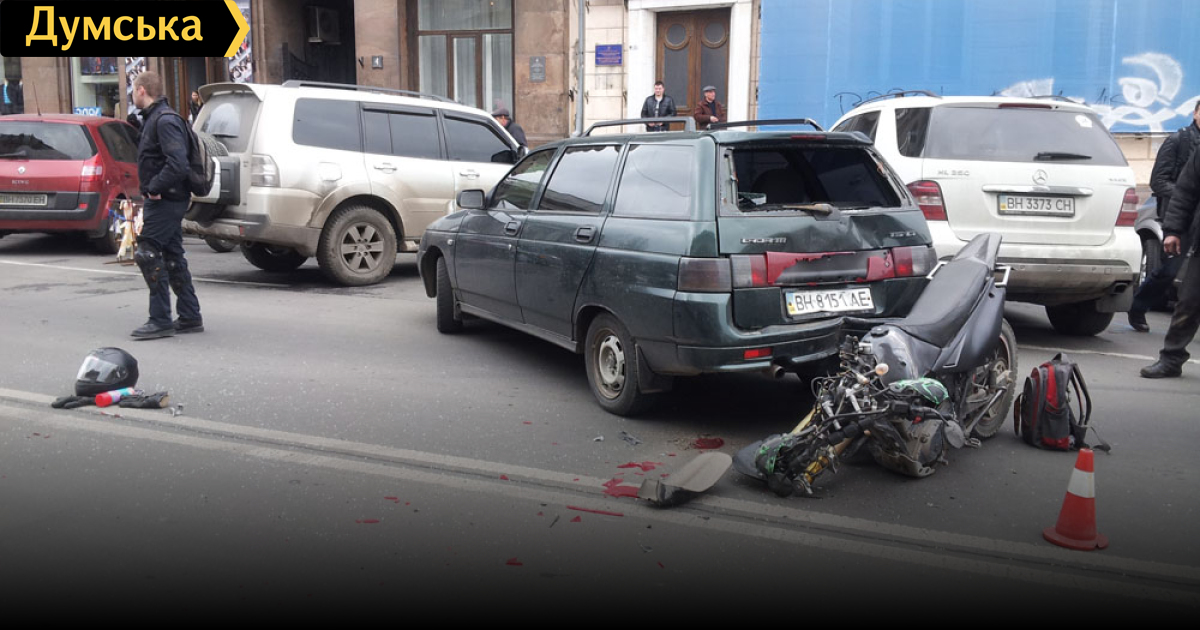 Возле Одесского оперного театра произошло серьезное ДТП с пострадавшим. Как передает ваш корреспондент, автомобиль ВАЗ, сдавая назад, сбил двигавшийся по Ришельевской мотоцикл. Водитель последнего госпитализирован с травмой головы.