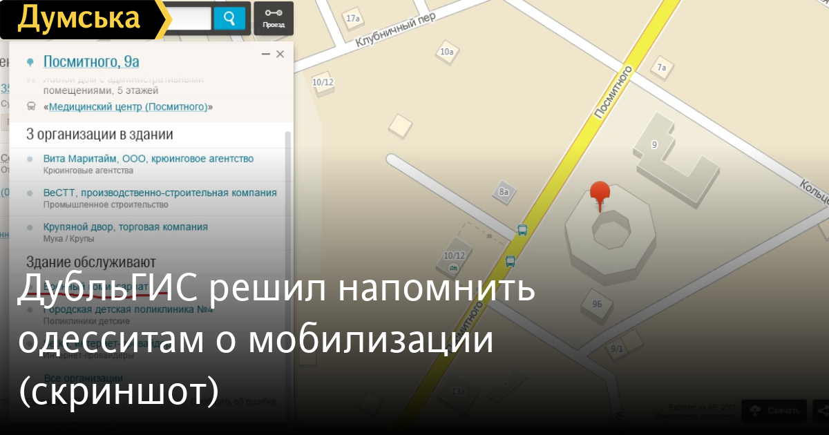 Популярный сервис ДубльГИС (интерактивные онлайн-карты городов) решил напомнить одесситам о мобилизации.