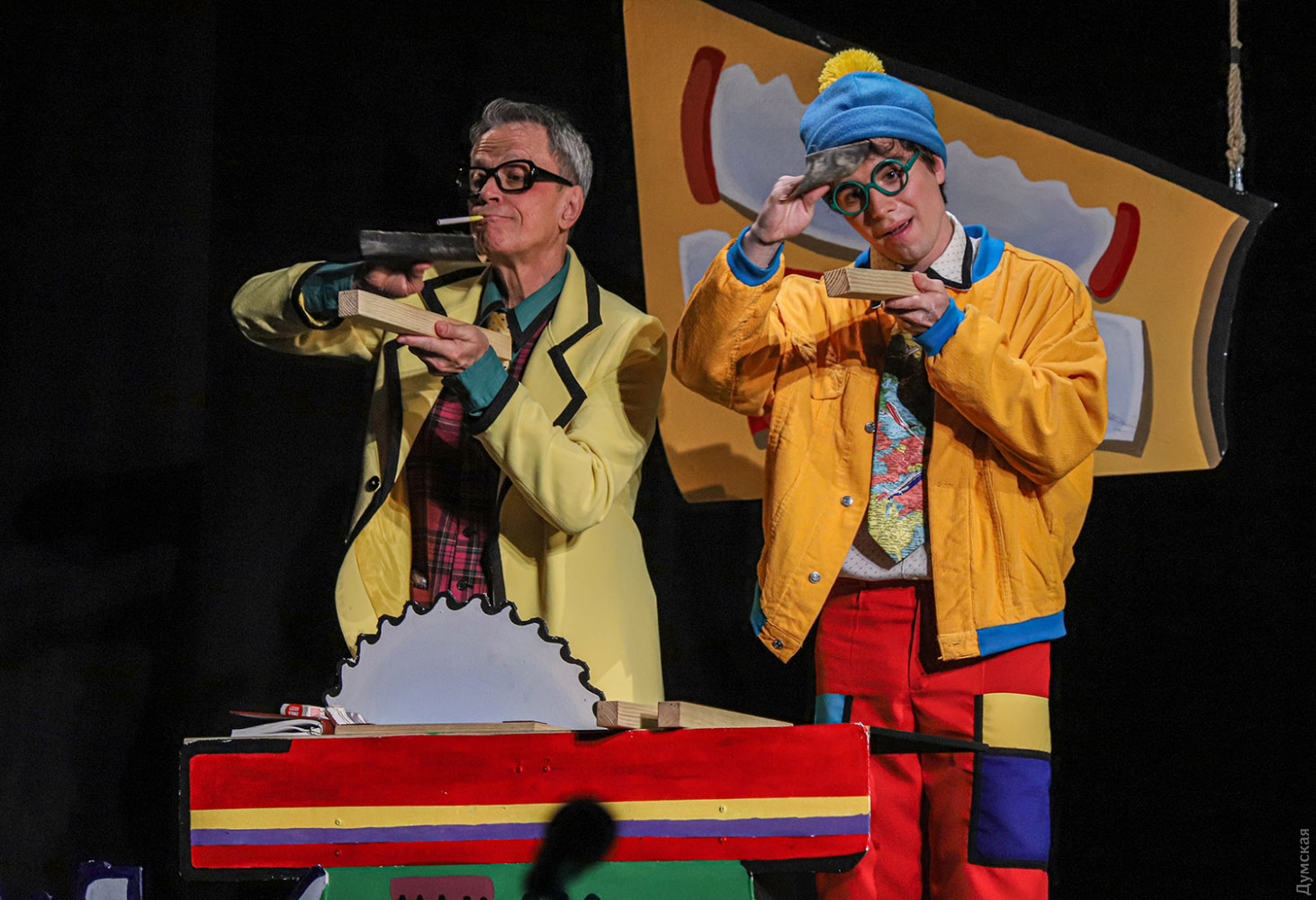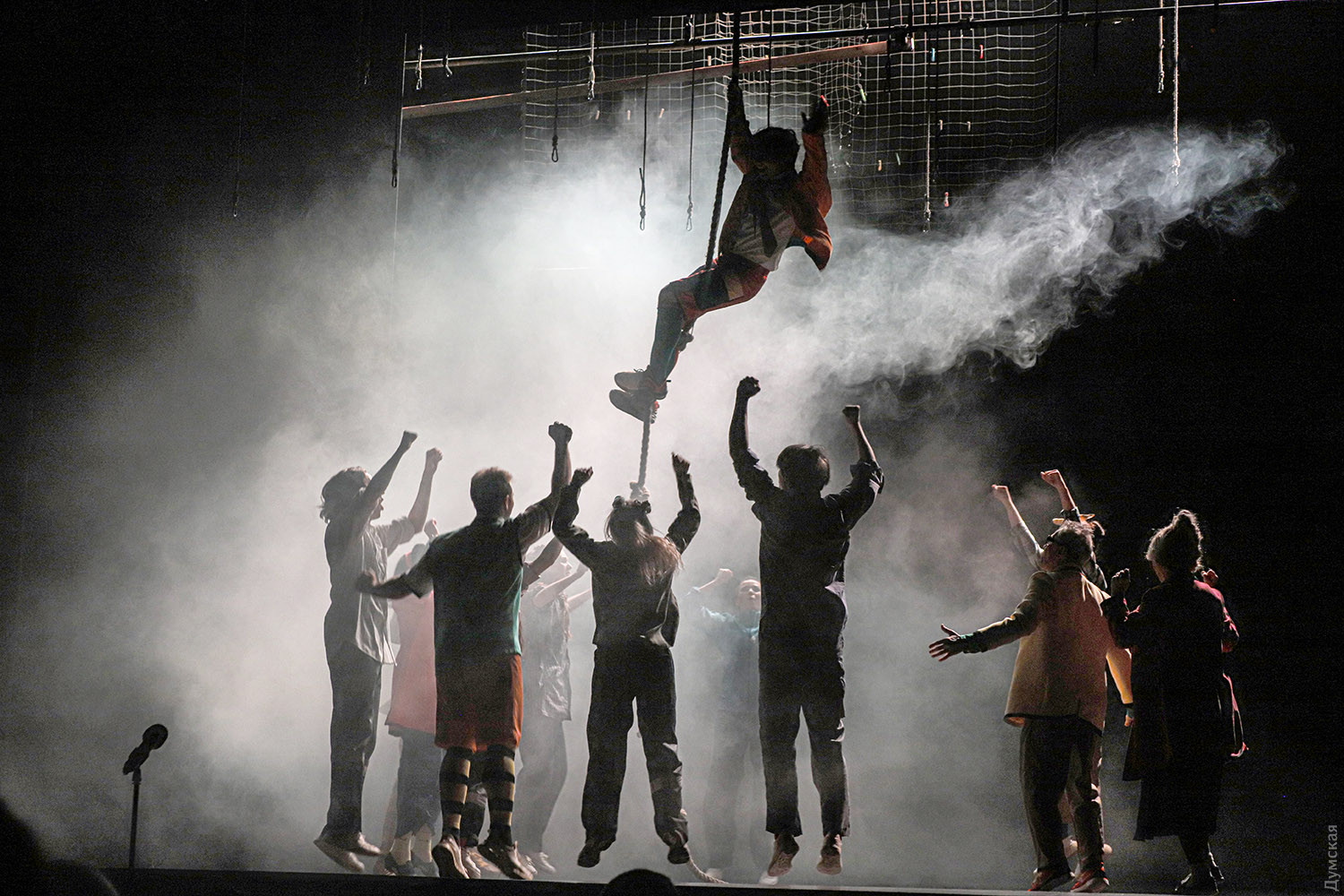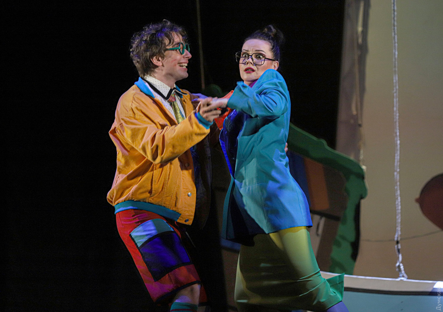 Перші покази вистави «35 кіло надії» за мотивами однойменного твору француженки Анни Гавальди відбулися в Театрі юного глядача. Режисер Євгеній Резниченко разом із сценографом Оленою Штепурою та хореографом Діаною Костикою створив надзвичайно цікаве видовище, сповнене глибокого змісту. Це треба дивитися разом з батьками, а також дідусями та бабусями. Історія худорлявенького хлопчика Грегуара (Сергій Черноіваненко) з золотими руками, але відсутністю здібностей до наук та невмінням налагоджувати стосунки із дитячим колективом, віддалена від нас у часі. Плюшеве щеня стає напарником у грі та наділяється якостями удаваного друга. Зараз вчителям доводиться мати справу з дитятками дошкульнішими. Не справив би такого ажіотажу сьогодні горе-учень (інсценізація Ксенії Швець додала смішний епізод, коли мати телефонує в усі школи й просить прийняти дитину: «Ні, не Грегуар Дюбоск, Грегор Рюбоск, Рю-боск!»). Лейтмотивом старшого покоління, діда й баби стає манкий голос Шарля Трене з його A douce France, солодкою Францією, що її нині знайдеш хіба у глибокій провінції. «Я б і радий працювати, та ось біда – не виходить. Все, чому навчають у школі, для мене китайська грамота. В одне вухо влітає, а в інше вилітає. Водили мене до мільйона лікарів, перевіряли очі, вуха, навіть мозок. Часу витратили купу, а висновок зробили, що в мене, бачте, проблема з концентрацією уваги. Насмішили! Я й сам знаю, що зі мною, мене б спитали. Все зі мною нормально. Ніяких проблем. Просто мені нецікаво. Не-ці-ка-во. І все… я зрозумів одну дуже просту річ: більше за все на світі мені цікаві мої руки и те, що вони здатні змайструвати». Діти насміхаються з Грегуара, вчителі не відстають, надто на уроках фізкультури, де слабенький хлопчик одного разу робив вправи у завеликій формі. «Я забув вдома фізкультурну форму, все б нічого, але це був уже третій раз за чверть, ось я і попросив Бенжамена дати форму брата, щоб знову не залишили після уроків. Я за один рік після уроків стільки насидівся, на скільки вас за все життя не залишали! От тільки я не знав, що у Бенжамена брат – клон Зеленого Велетня, росту в ньому метр дев'яносто». Ясна річ, хлопцеві потрібен технічний коледж. І чоловіче виховання. «Мій дід Леон – такий же майстер на всі руки, як і я, тільки у нього до того ж ще і голова варить… Входячи у цей закиданий – не повернутися – сарайчик, я роздуваю ніздрі, щоб глибше вдихнути запах щастя. Запах гарячої змазки, електронагрівача, пайки, клею, тютюну і ще багато чого». Так, у цій родині саме дідусь Леон (заслужений артист України Сергій Мельник) стає справжнім другом хлопцю, та ще бабуся Шарлотта (Олена Юзвак), зациклена на пирогах, то вишневий кличе покуштувати, то сливовий, то абрикосовий… Варто зазначити, не надто улюблена автором цих строк дим-машина у виставі працює якраз за призначенням: коли один з пирогів починає підгоряти, духовка димить. Ніякої димової завіси, що заважає публіці та артистам, все виправдано. Батьки зрозуміти свою дитину не можуть, самі ще незрілі, втікають від реальності кожен на свій розсуд. Мама (Ляна Карєва) більше прив’язана до своїх абстрактних картин у навмисне перекошених рамах, ними увішаний весь будинок, навіть обідній стіл тут перекошений, нема балансу в сімействі, тато (Олексій Кочетов) занурений в читання газет, не до сина. З ким залишиться Грегуар, коли дід під
